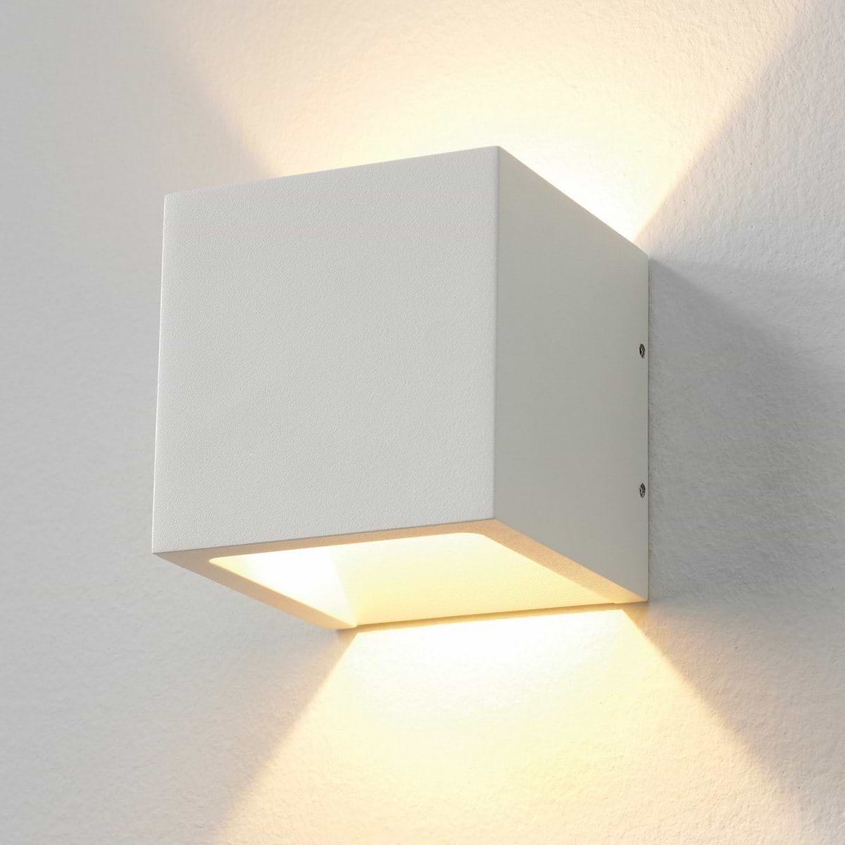 Badkamer wandlamp, badkamerlamp (zone 2 en 3) en buitenlamp (plensbui), wit “Cube” 10x10x10cm IP54 dimbaar LED 6W 2700K 696lm, ART DELIGHT