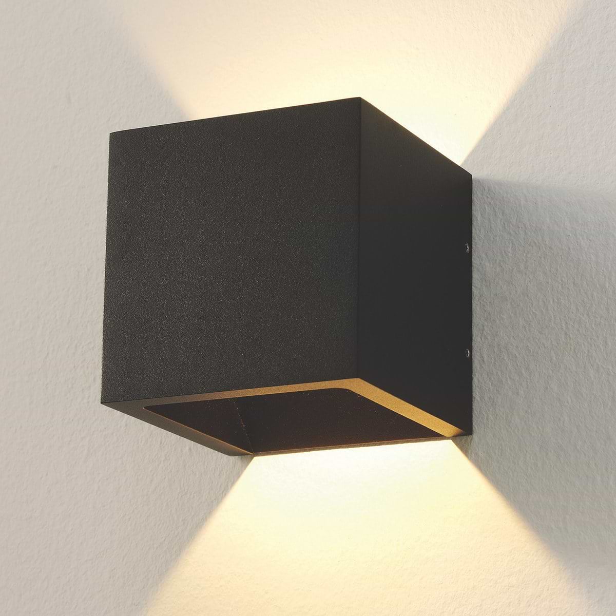 Badkamer wandlamp, buitenlamp (plensbui), badkamerlamp (zone 2 en 3), zwart “Cube” 10x10x10cm IP54 dimbaar LED 6W 2700K 696lm, ART DELIGHT