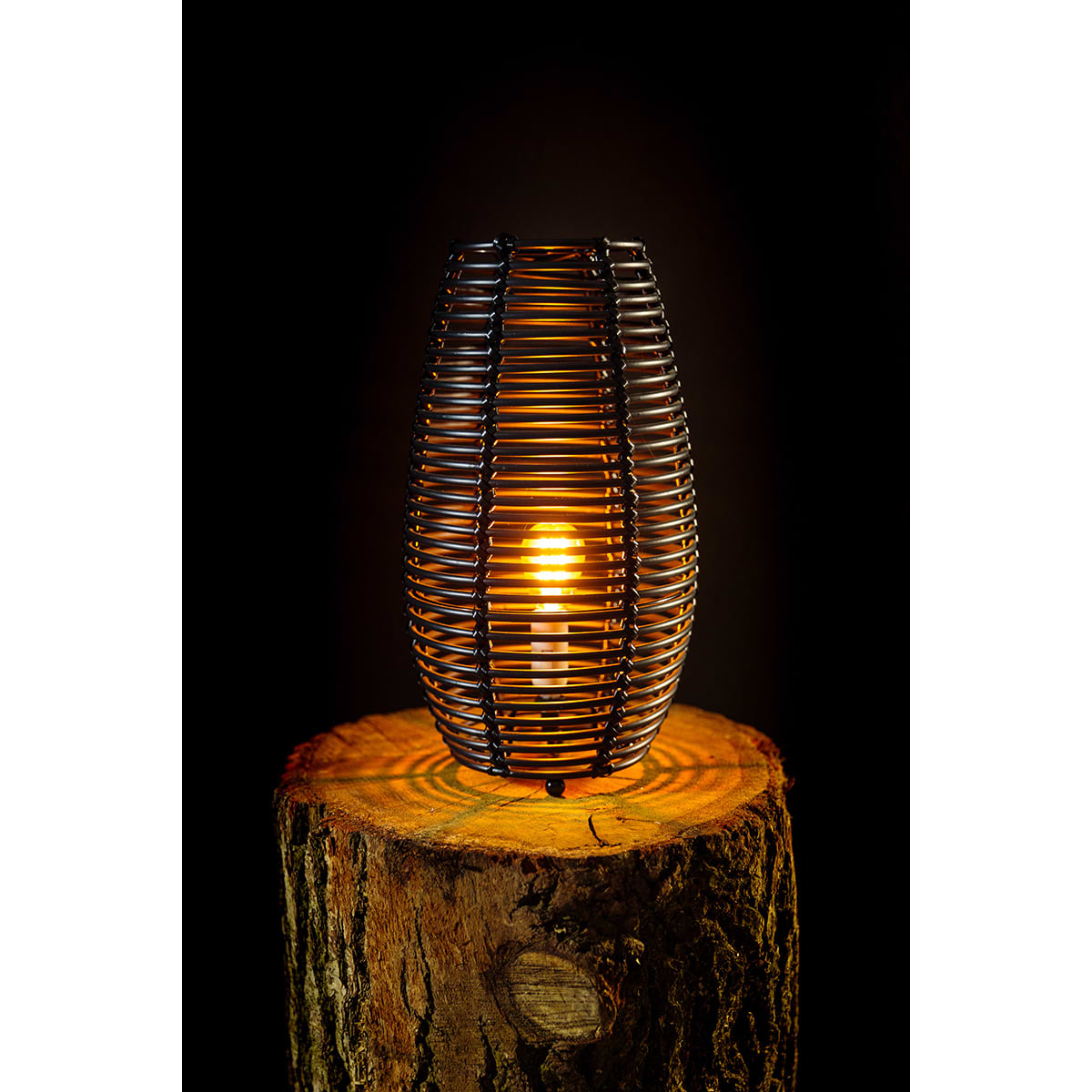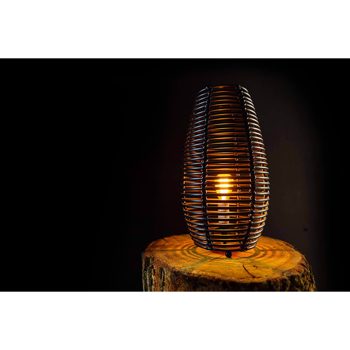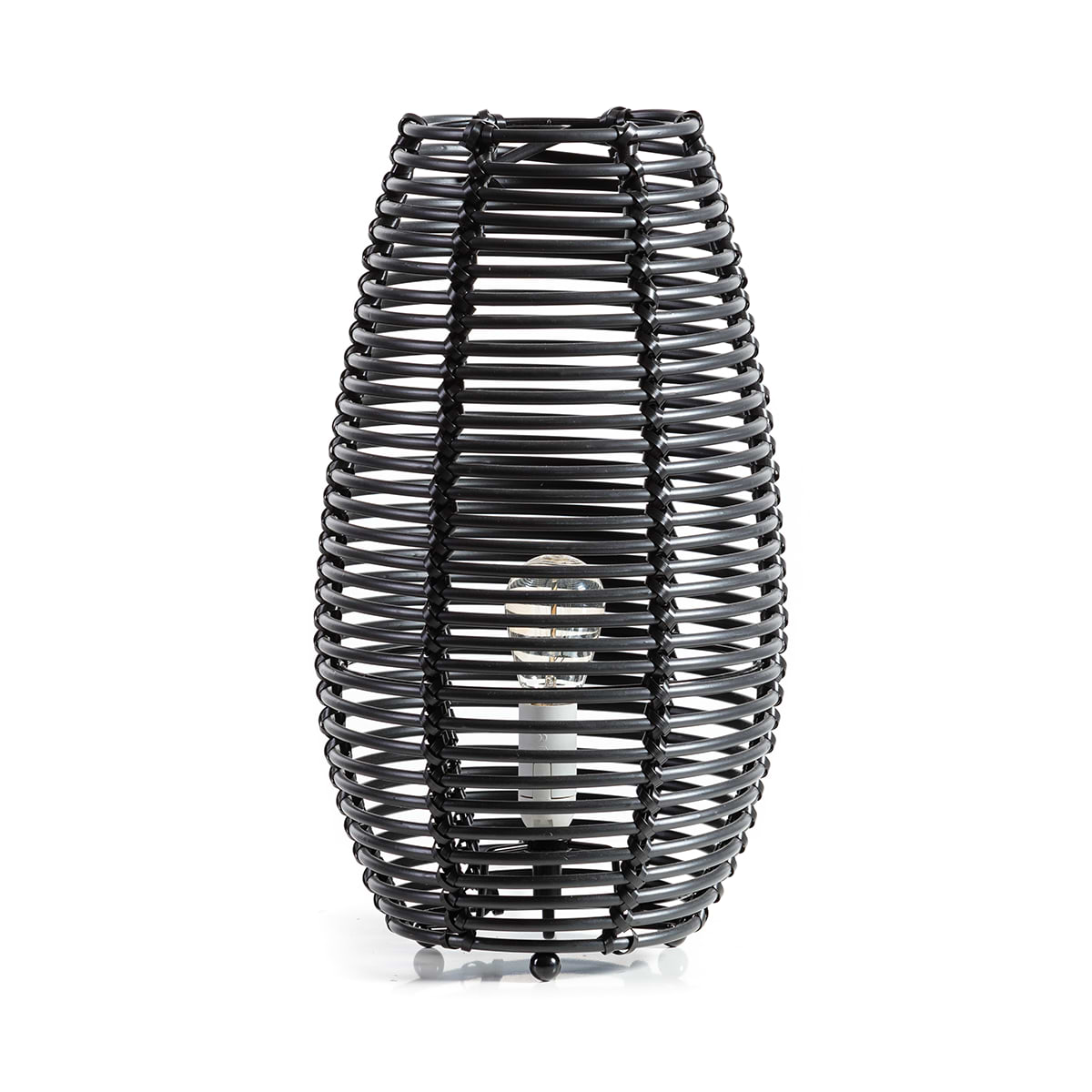 Bijzondere tafellamp Cocoon, 1-lichts, gemaakt van Rattan, zwart, 105 cm lengte – ETH. De lamp is dimbaar via een externe wanddimmer. De serie Cocoon bevat een hanglamp, vloerlamp en tafellamp. Zoek op onze website in het zoekveld naar ‘Cocoon’.