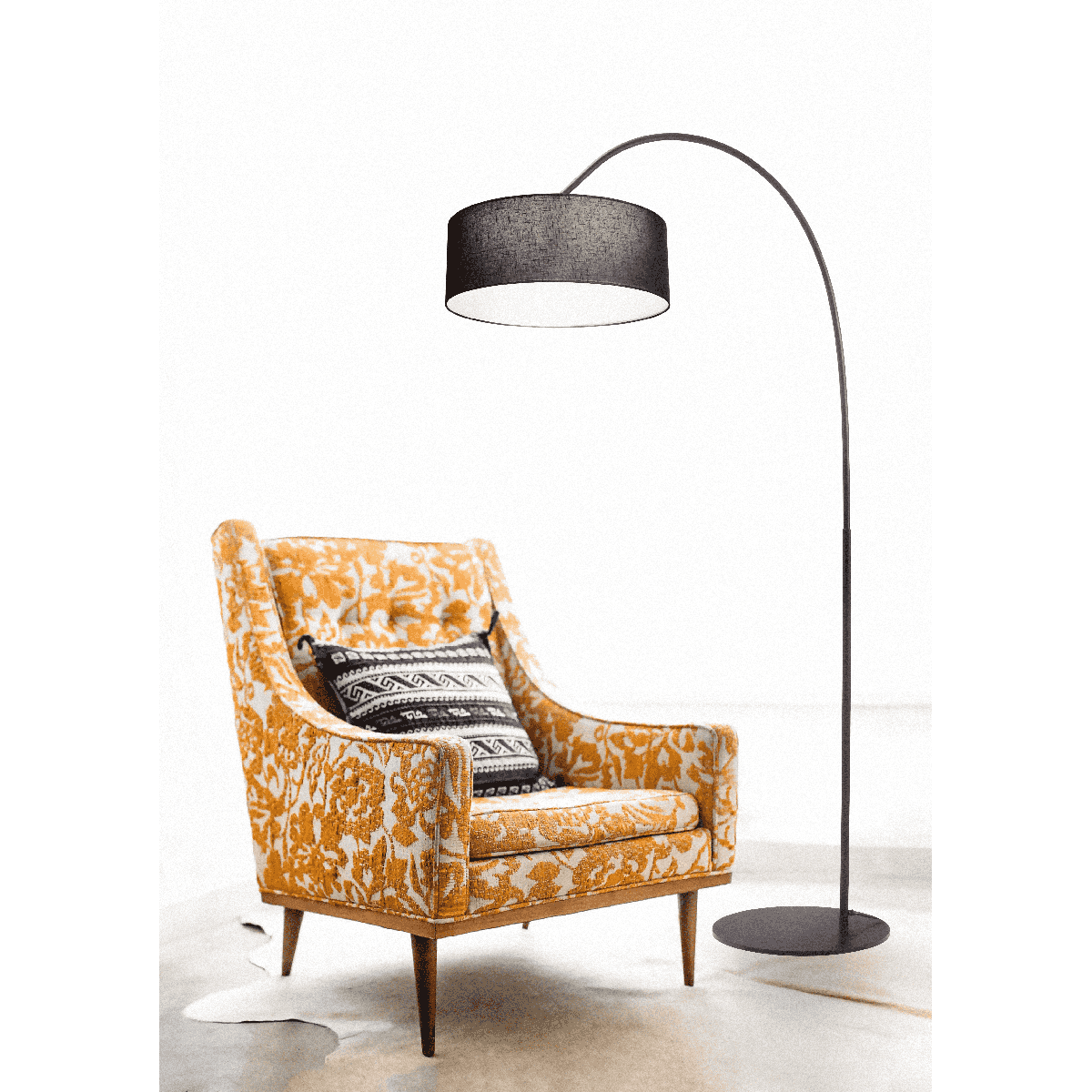 Booglamp, vloerlamp Arch zwart hoogte 183cm breedte 88cm inclusief kap, MASTERLIGHT