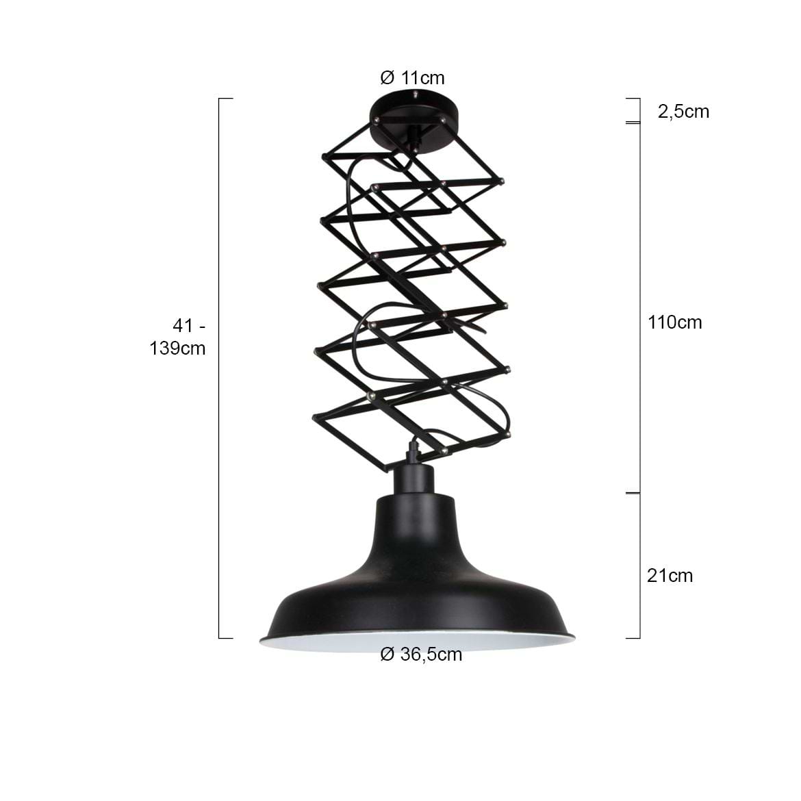 Max. hoogte (totaal bovenkant plafondkap – onderkant lamp) in cm: 140