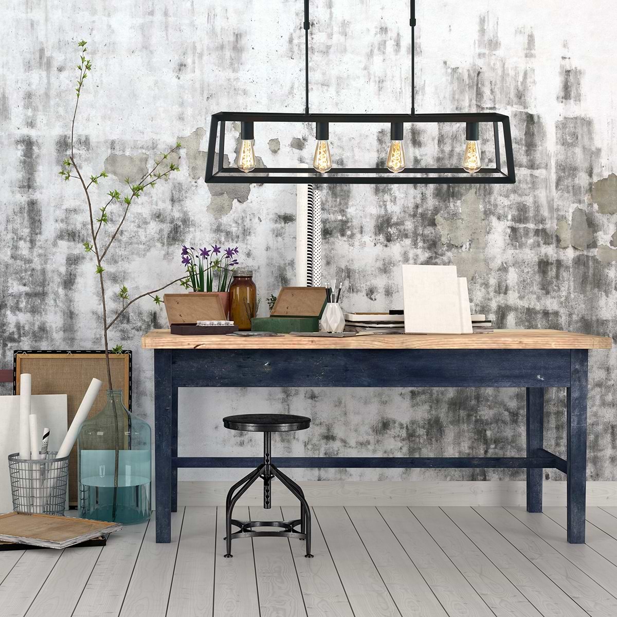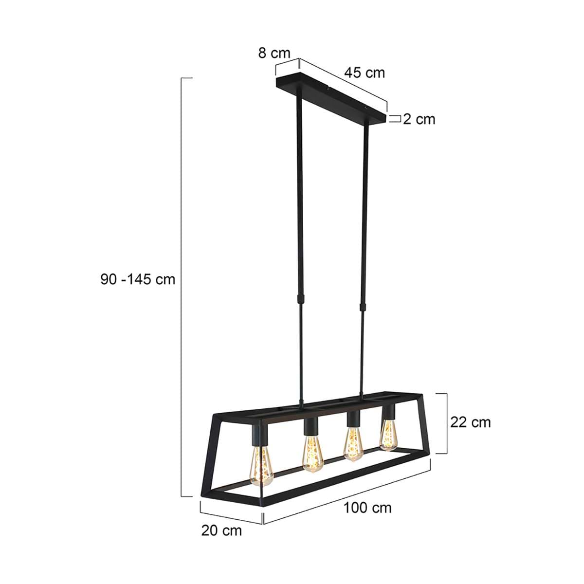 Hanglamp 4-lichts E27 40w, zwart, Buckley, modern, Mexlite
