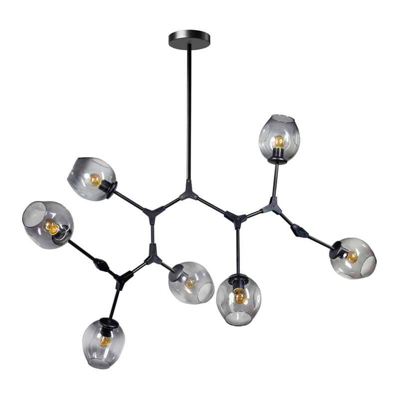 Hanglamp, armatuur zwart glas smoke, modern, 7-lichts, Lime, ETH, Expo Trading Holland