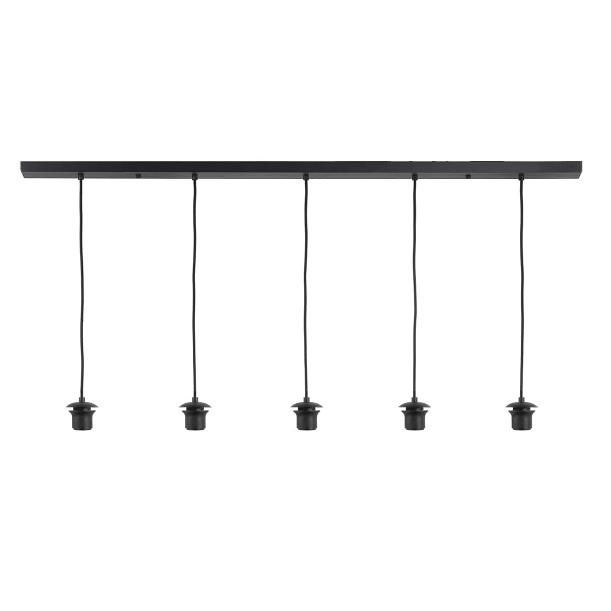 Hanglamp balk 5 X E27 130cm. Zwart zonder glas of kap, HIGH LIGHT. Voor glas- of kapmontage.