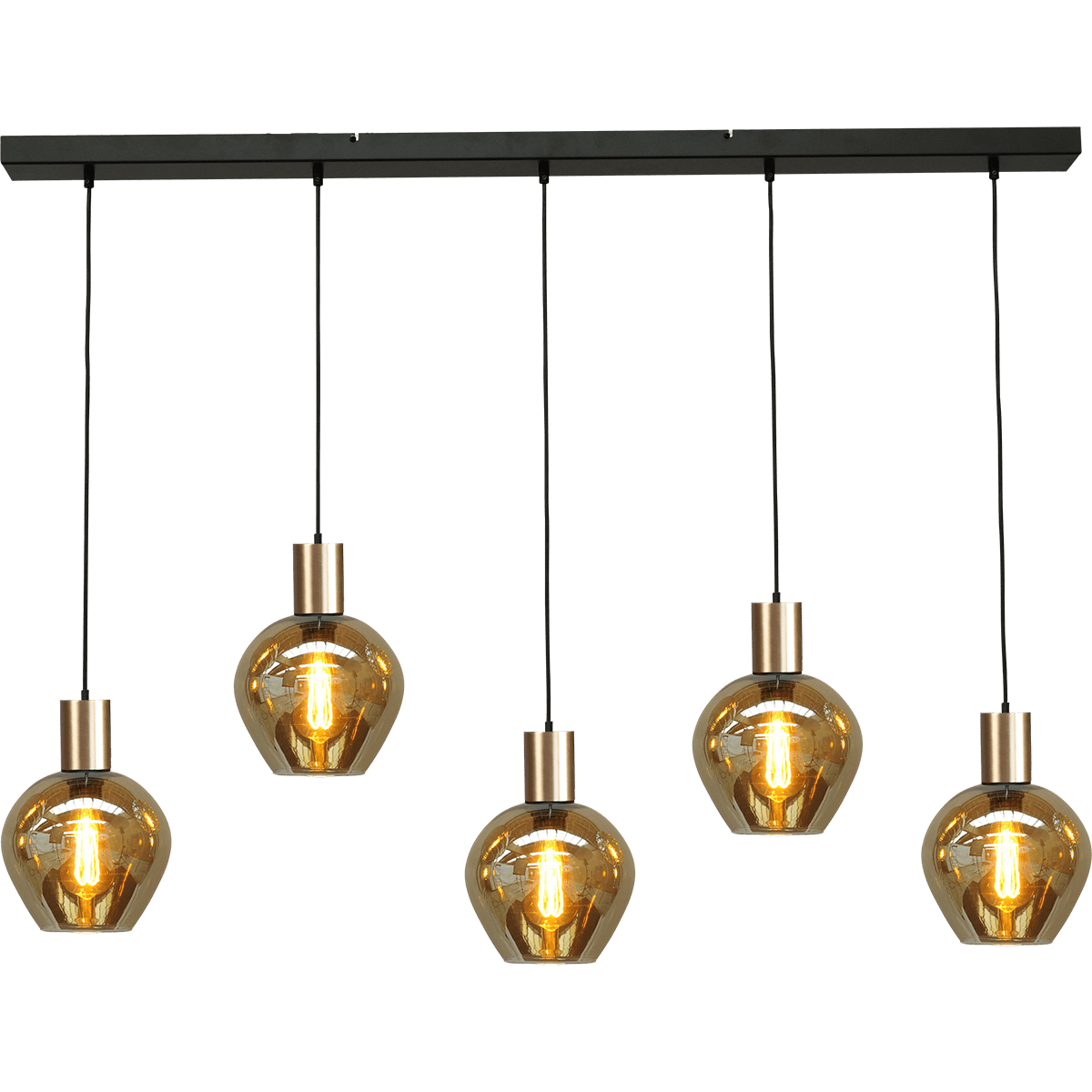 Hanglamp Bounty 5-lichts mat zwart/mat goud 130x8cm, MASTERLIGHT