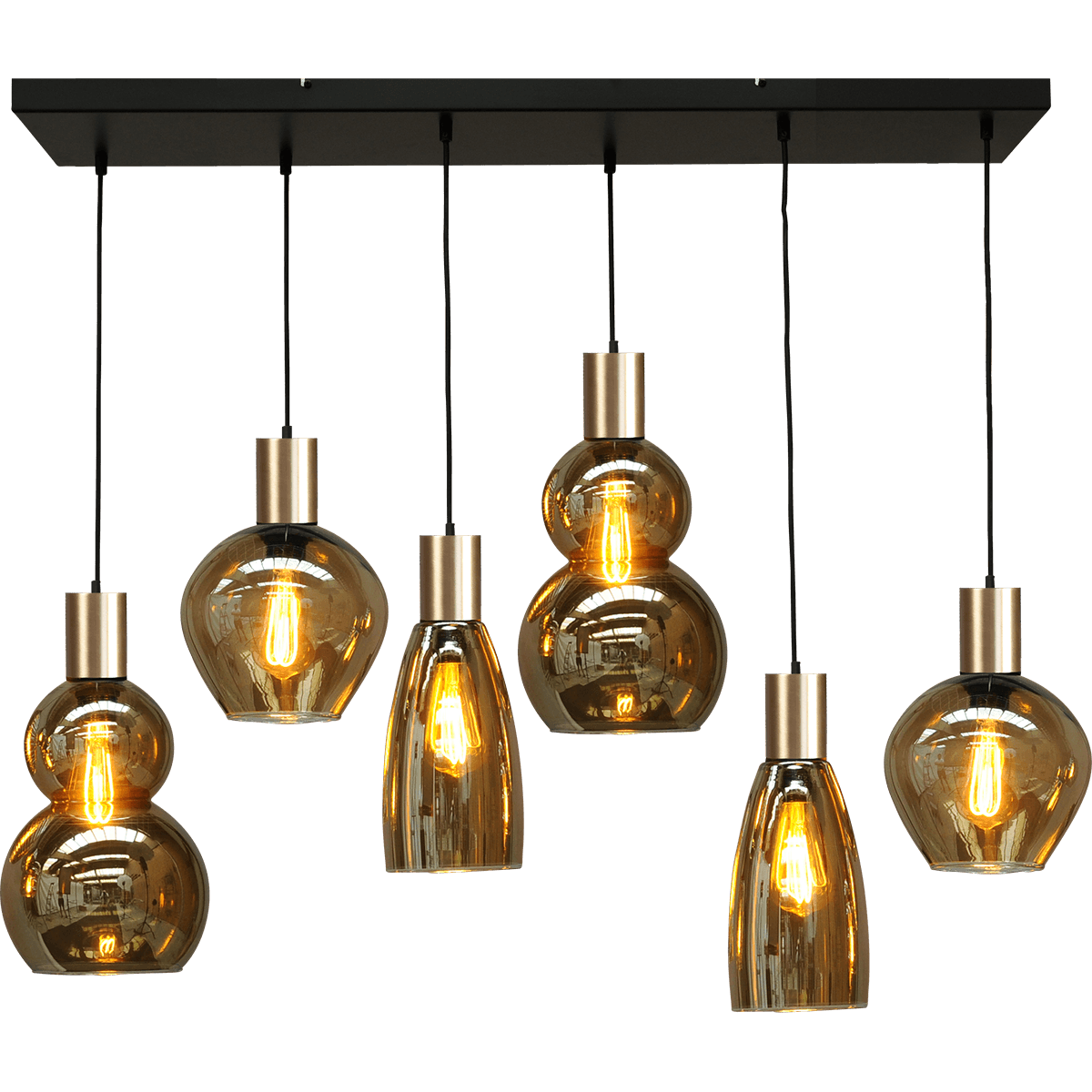 Hanglamp Bounty 6-lichts mat zwart/mat goud 100x25cm, MASTERLIGHT