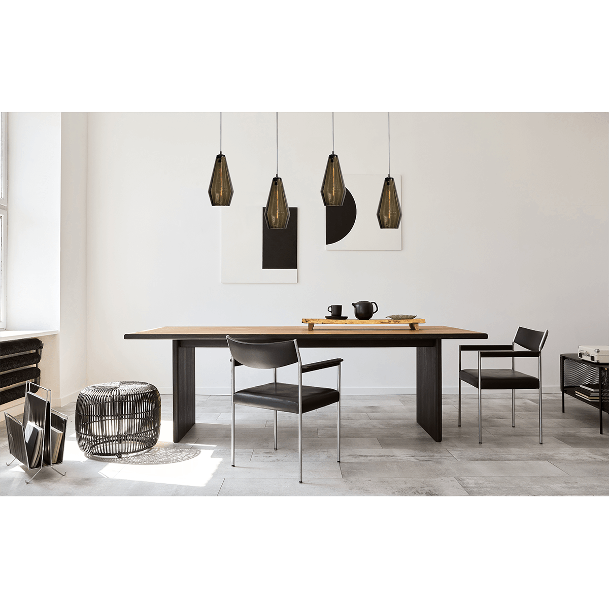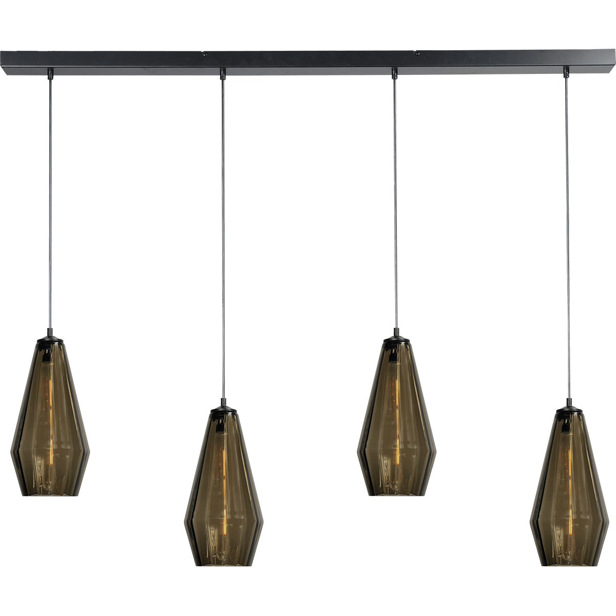 Hanglamp Diamond 4-lichts mat zwart 130x8cm, smoke glas, MASTERLIGHT