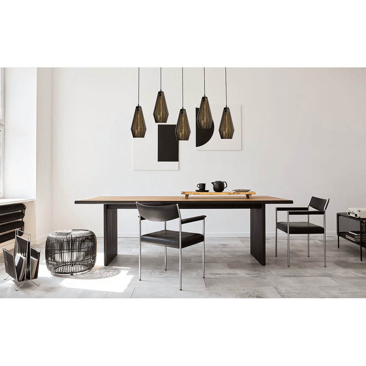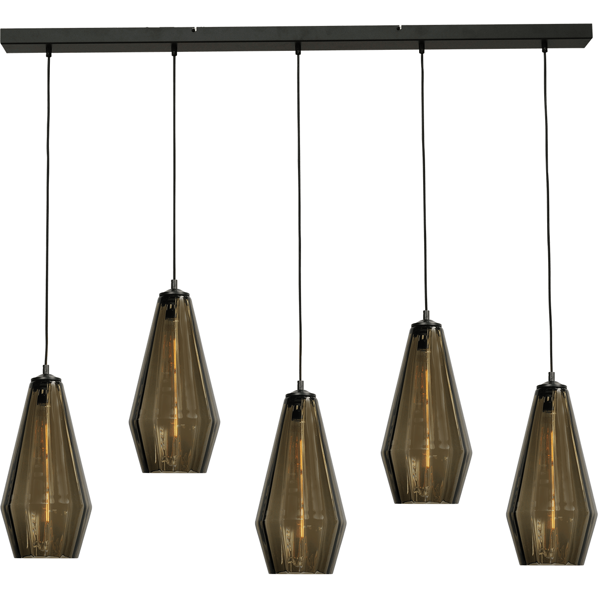 Hanglamp Diamond 5-lichts mat zwart 130x8cm, smoke glas, MASTERLIGHT