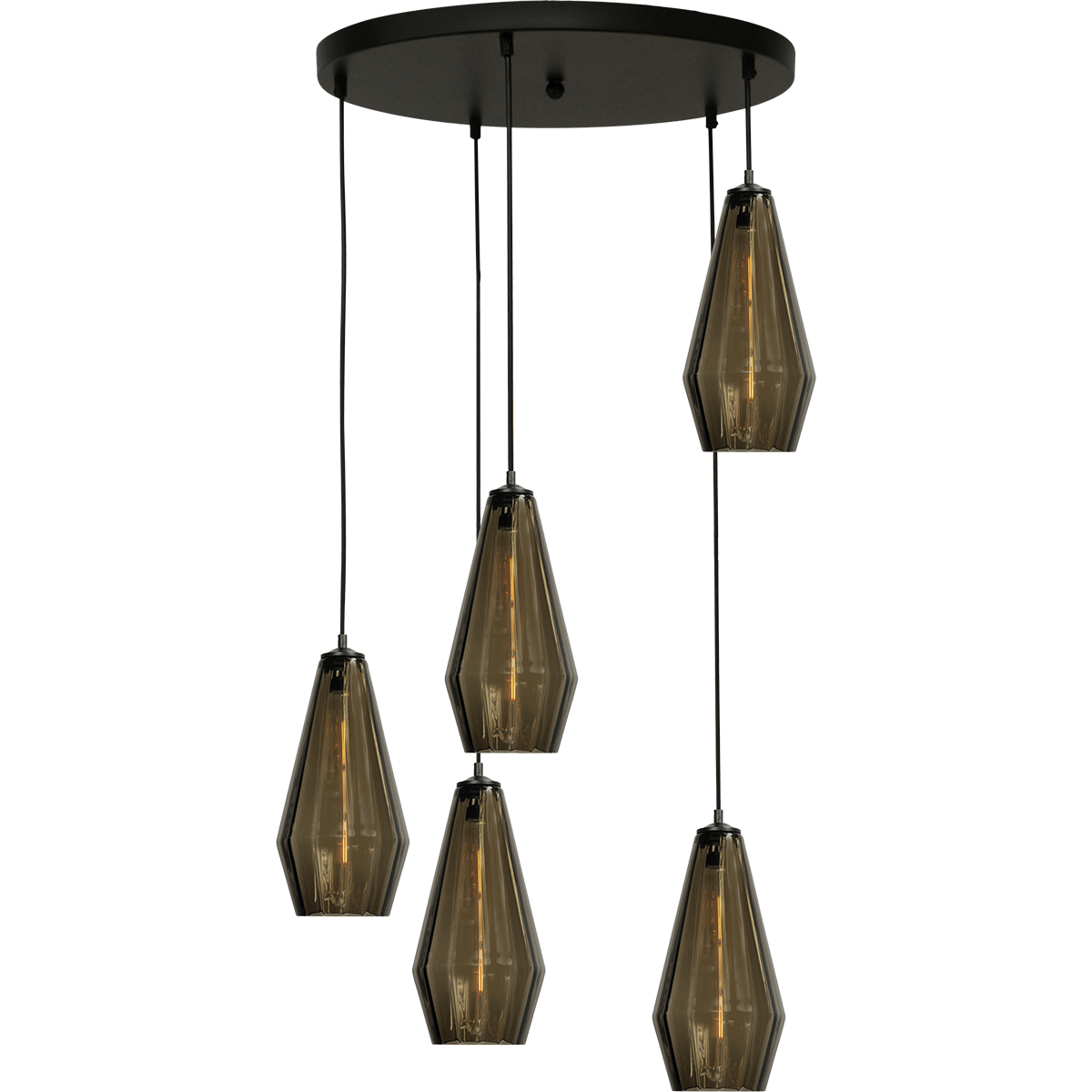 Hanglamp Diamond 5-lichts mat zwart Ø50cm, smoke glas, MASTERLIGHT