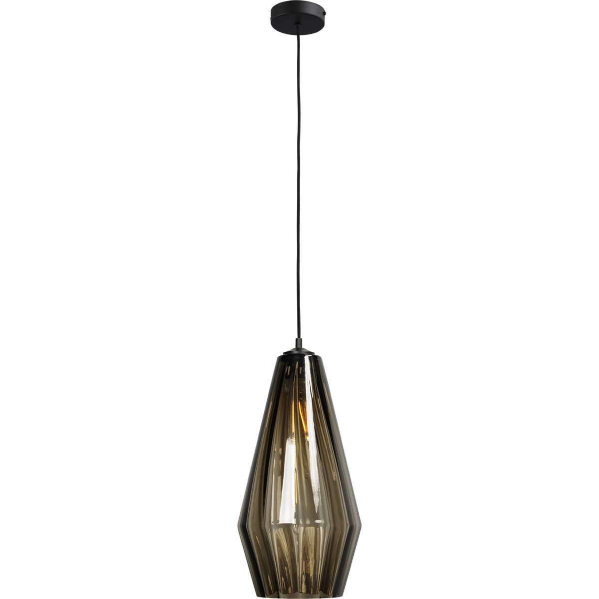 Hanglamp Diamond mat zwart 1-lichts kabel 150cm, smoke glas, MASTERLIGHT