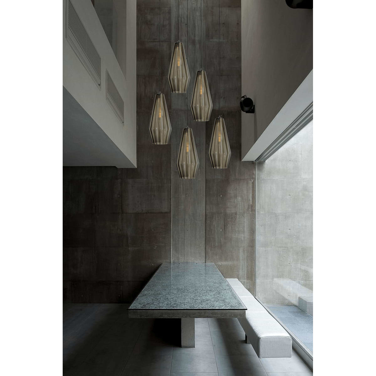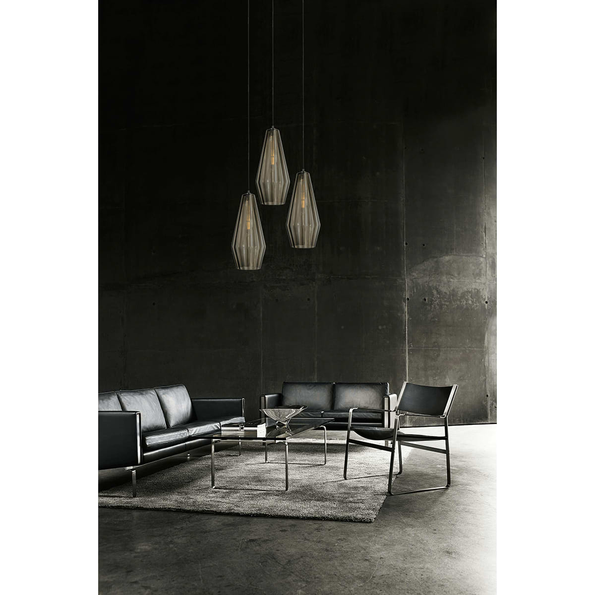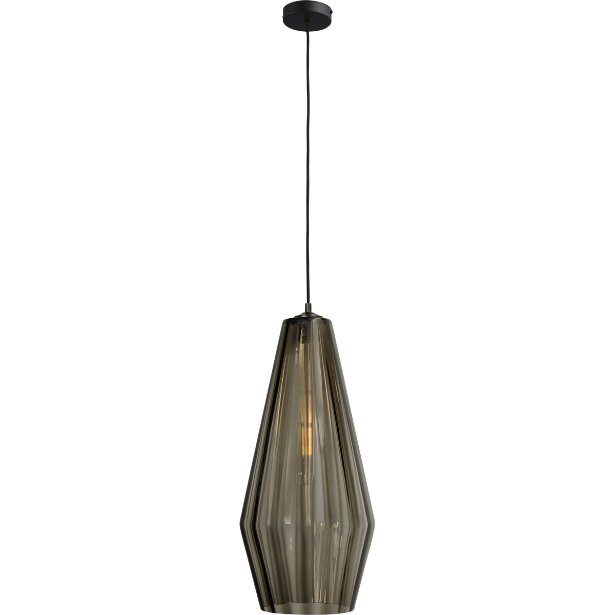 Hanglamp Diamond mat zwart 1-lichts kabel 150cm, smoke glas, MASTERLIGHT