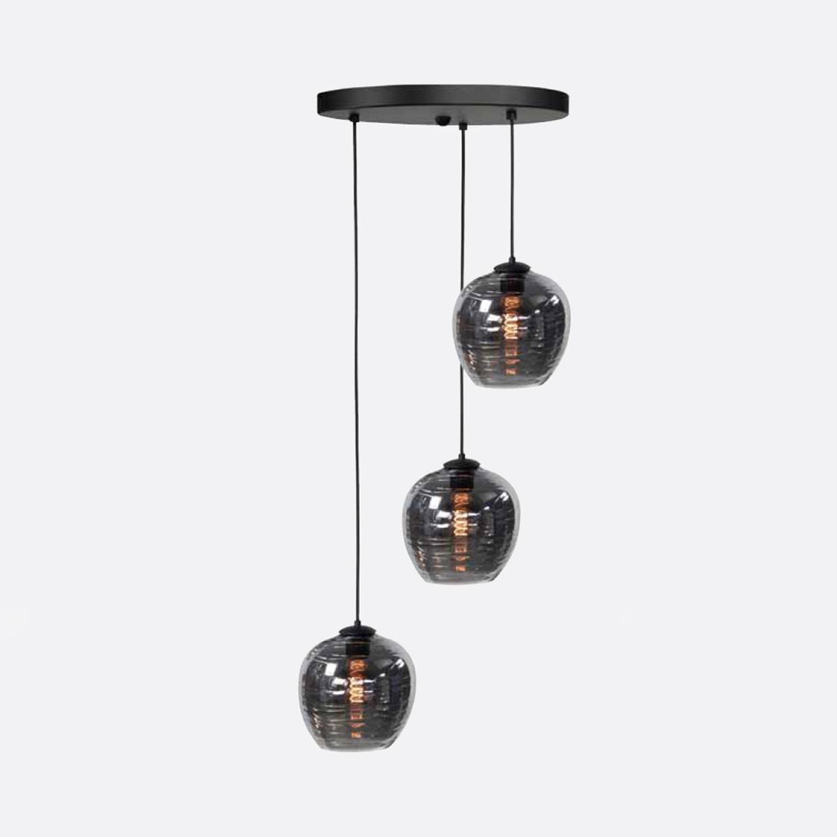 Hanglamp Fantasy Globe 3-lichts inclusief Smoke glas bollen, LED, mat zwart, dimbaar, HIGH LIGHT