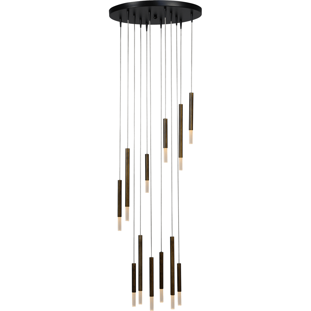 Hanglamp Flute 12-lichts zwart/antiek messing Ø50cm, MASTERLIGHT