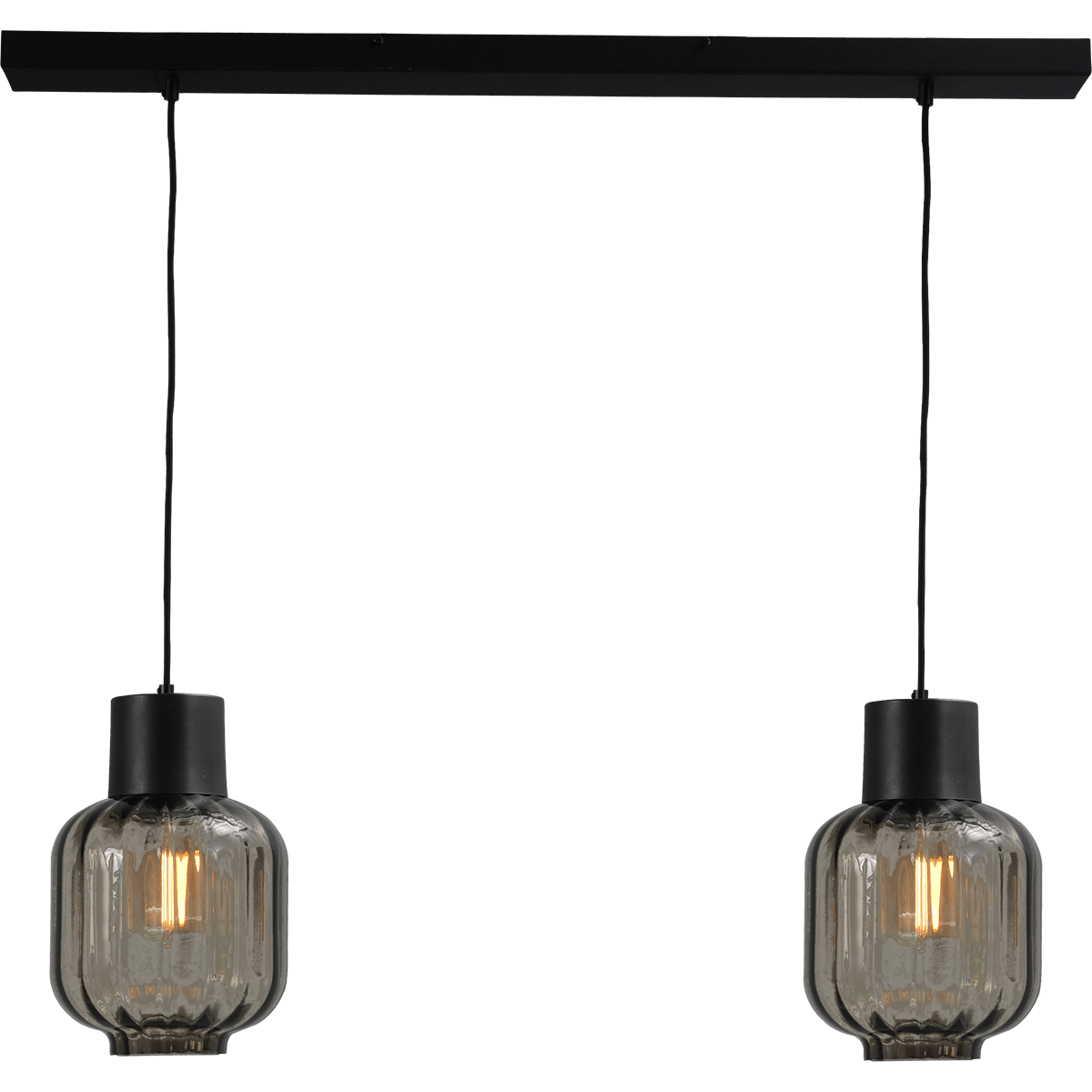 Hanglamp “Lett Rib” zwart 2-lichts beam 100x8cm, glas 200x200mm, MASTERLIGHT