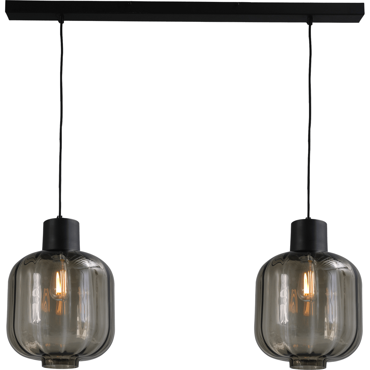Hanglamp “Lett Rib” zwart 2-lichts beam 100x8cm, glas 280x280mm, MASTERLIGHT