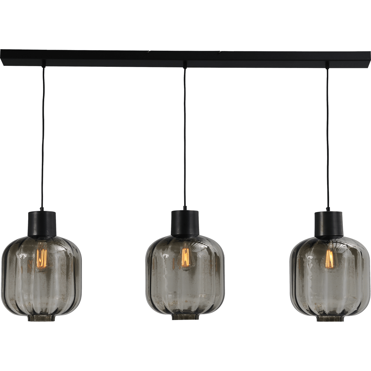 Hanglamp “Lett Rib” zwart 3-lichts beam 130x8cm, glas 280x280mm, MASTERLIGHT