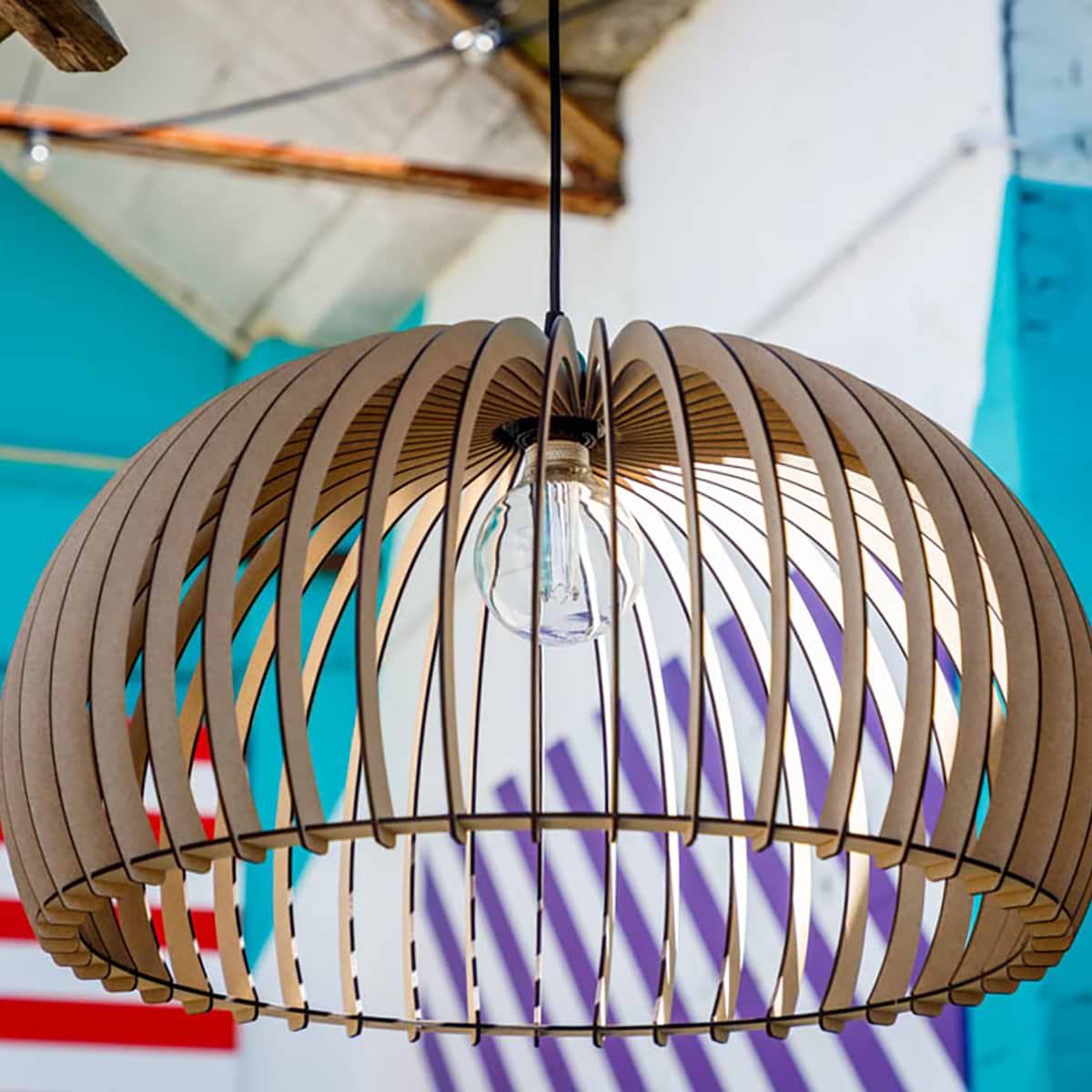 Houten hanglamp, scandinavisch design, Memphis, 60cm, Naturel hout, BLIJ DESIGN