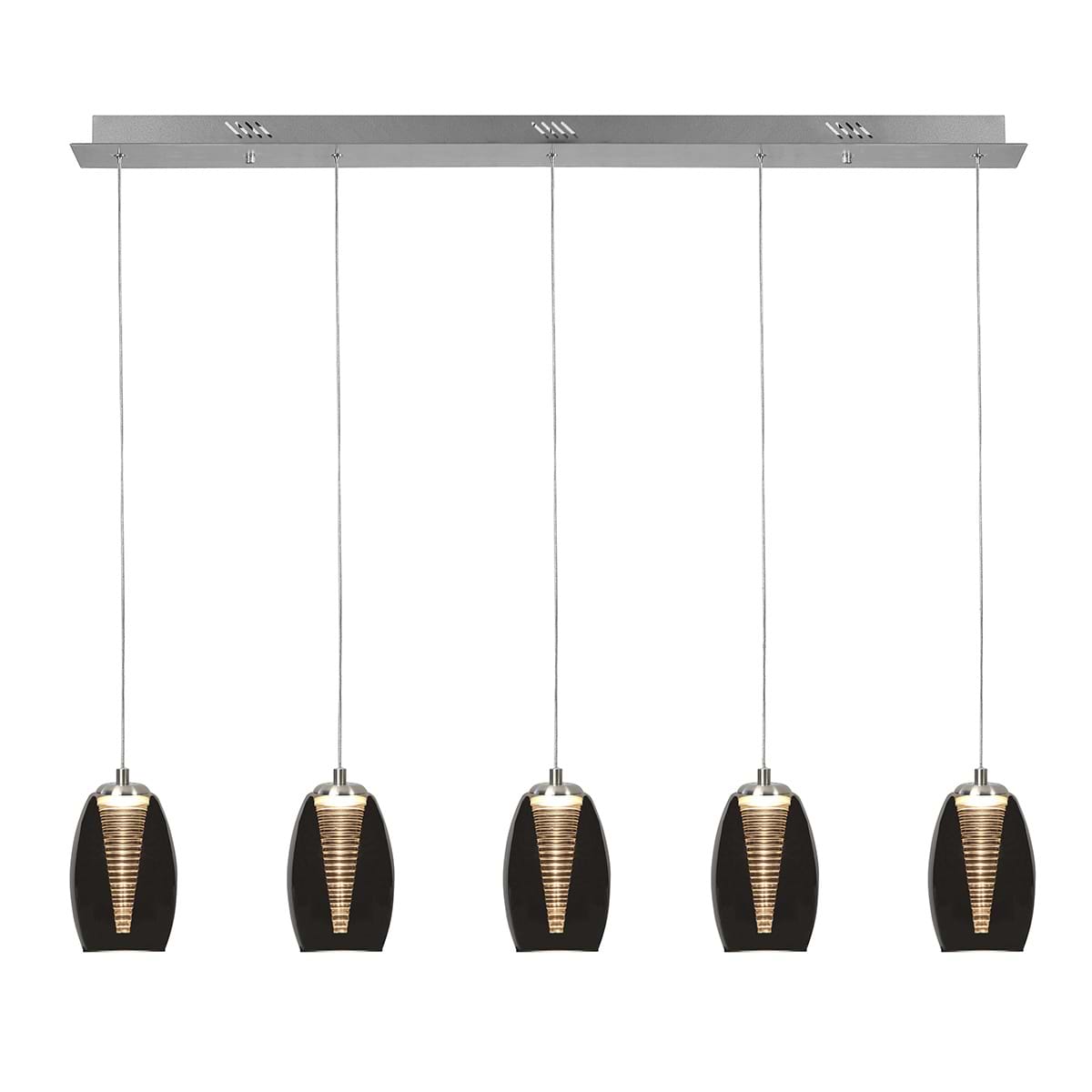 Hanglamp Nebula 5x5W LED 2700K, 2250 Lumen, balk 110cm. Nikkel Metaal dimbaar + 5 x glas Smoke, G 2170.19, HIGH LIGHT