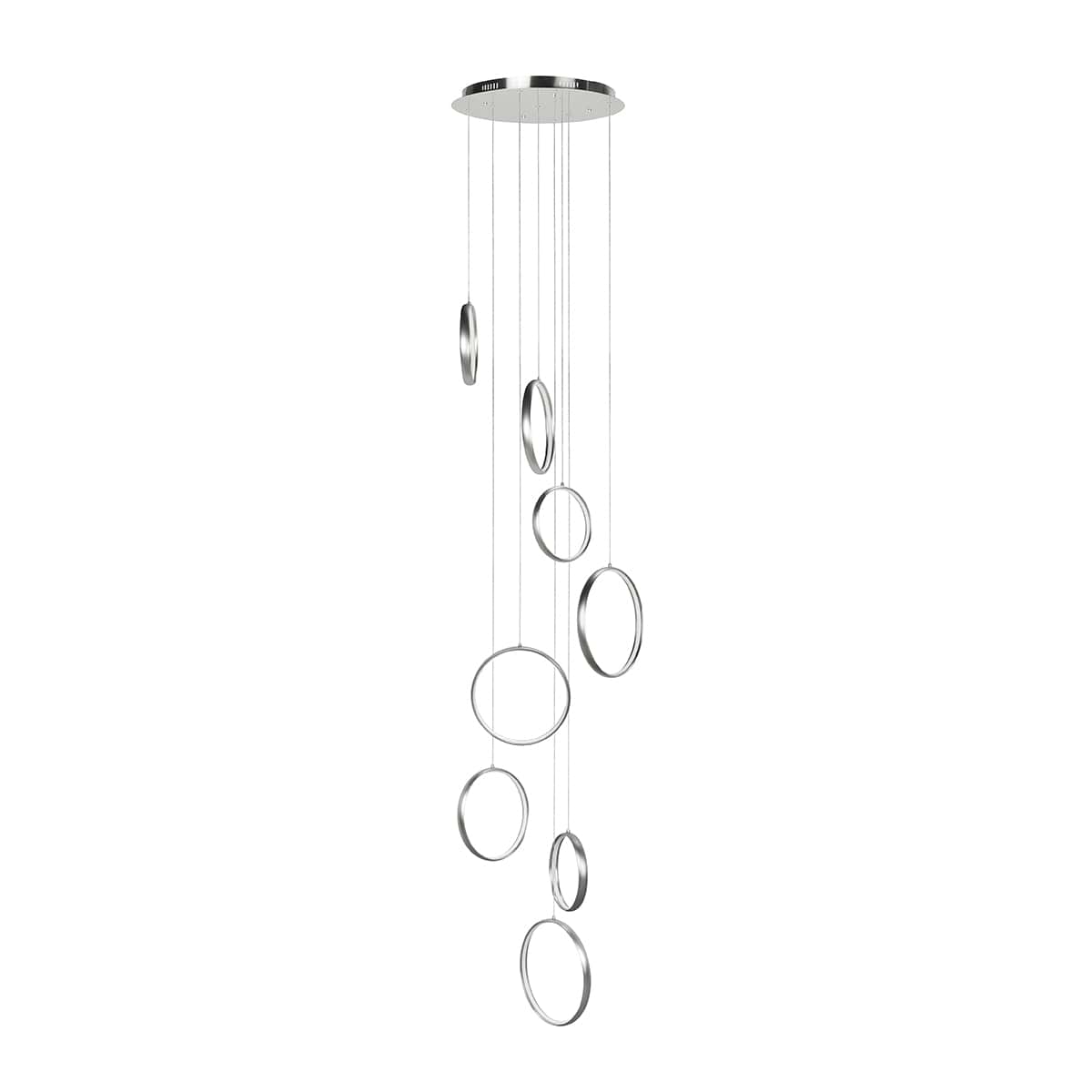 Hanglamp Olympia met 8 ringen met vervangbaar geïntegreerd LED, 70W LED 2700 Kelvin, 6300 Lumen. Maximale hoogte 330 cm. Kleur nikkel mat. HIGH LIGHT