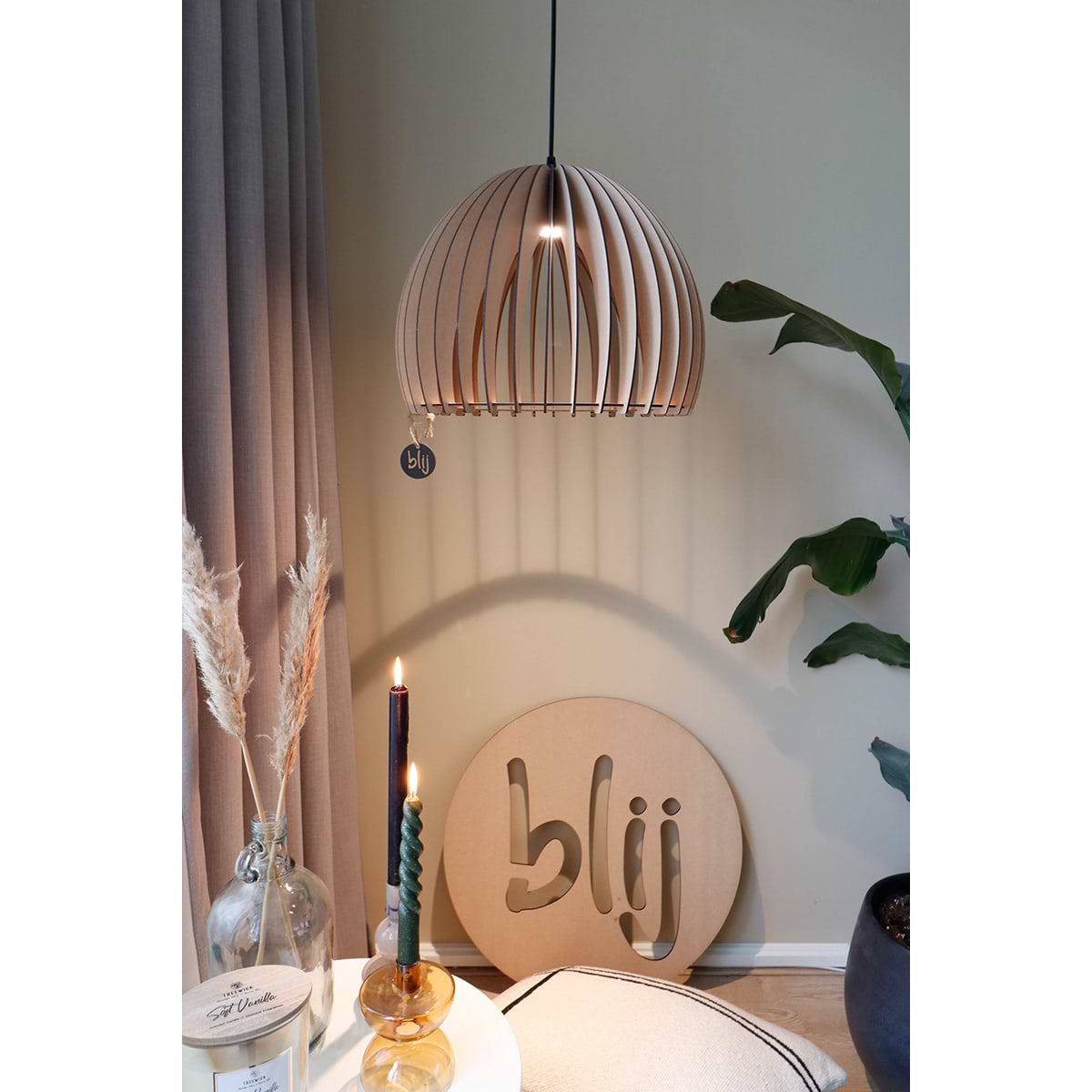 Houten hanglamp, scandinavisch design, Oslo, 55cm, Naturel hout, BLIJ DESIGN
