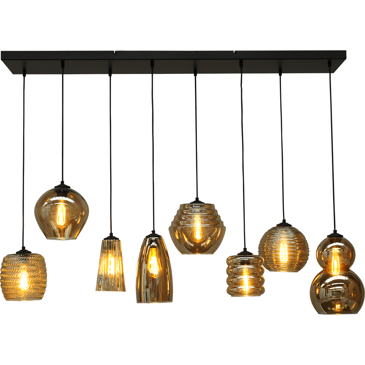 Hanglamp Quinto 8-lichts mat zwart 130x25cm, MASTERLIGHT
