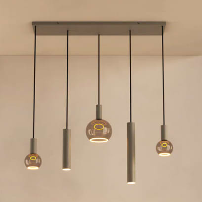 Hanglamp Riva, stalen armatuur kleur Quartz 2, 5 lichts, exclusief lichtbronnen, ZTAHL