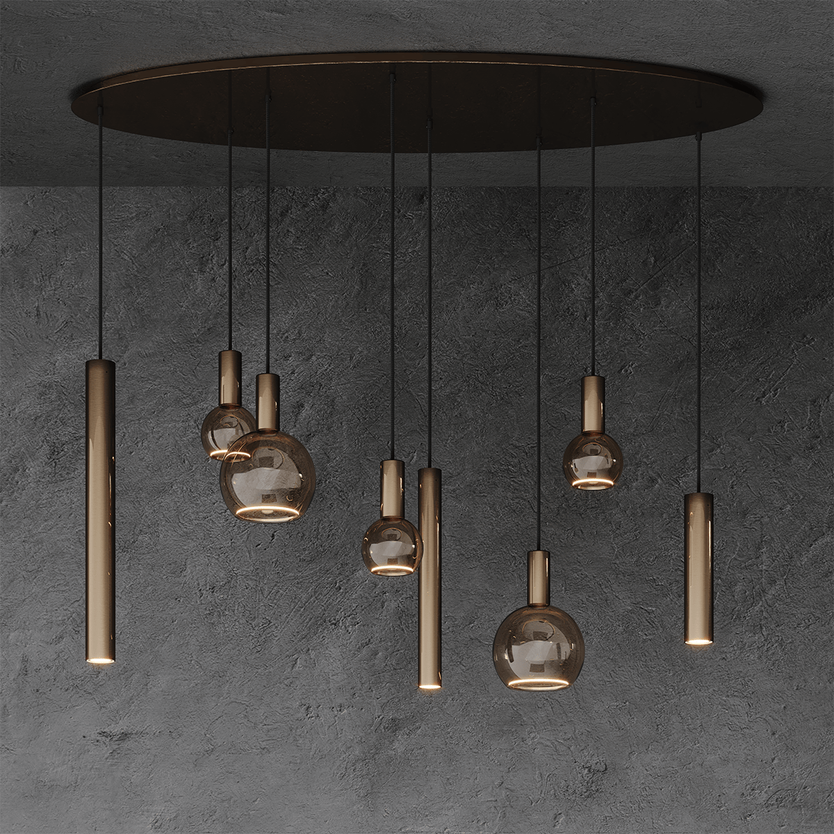 Hanglamp Riva, ovaal, stalen armatuur kleur Platinum, 8 lichts, exclusief lichtbronnen, ZTAHL