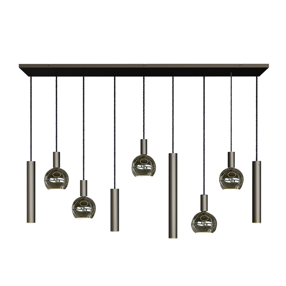 Hanglamp Riva, dikke buizen, stalen armatuur kleur Platinum, 9 lichts, exclusief lichtbronnen, ZTAHL