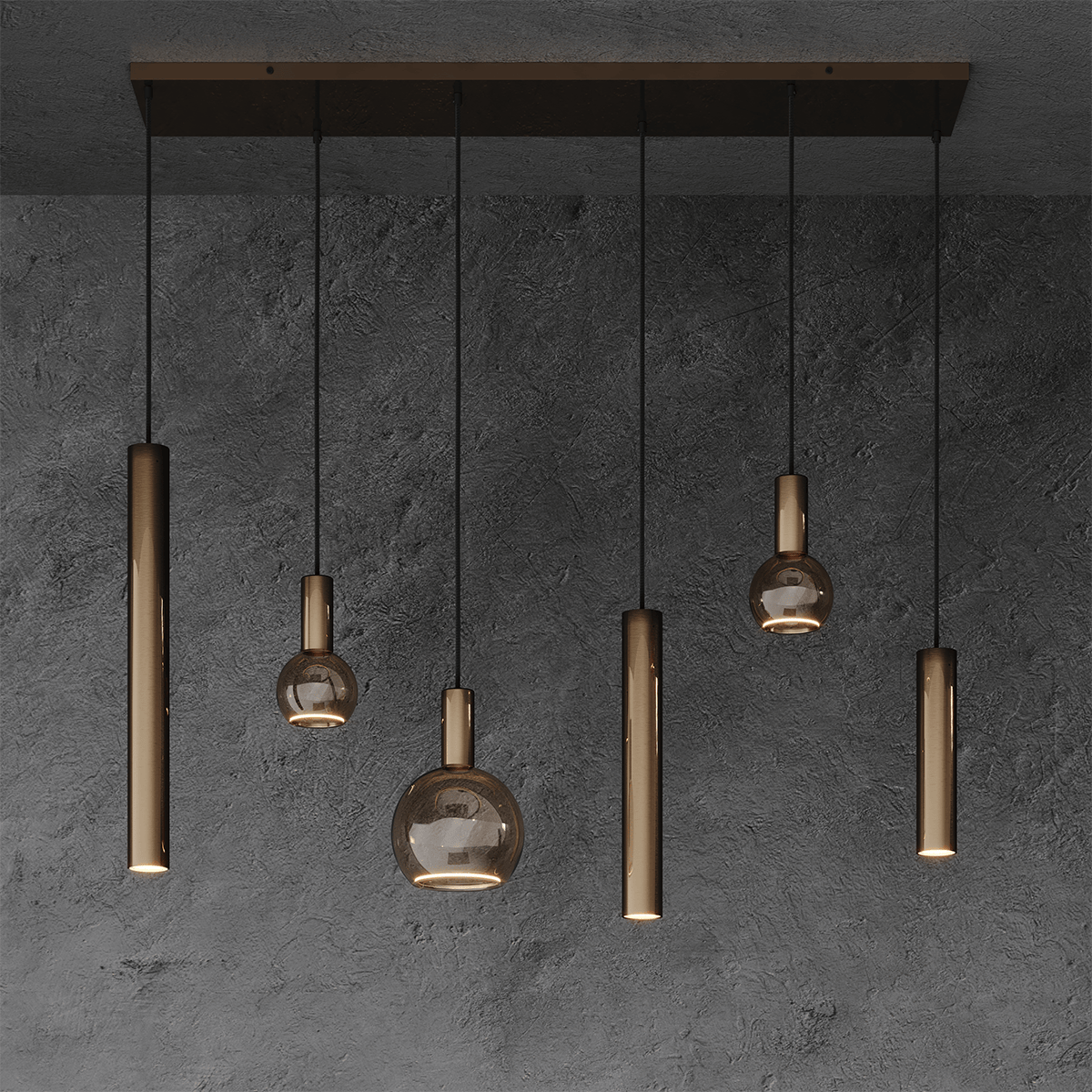 Hanglamp Riva, stalen armatuur kleur Platinum, 6 lichts, exclusief lichtbronnen, ZTAHL