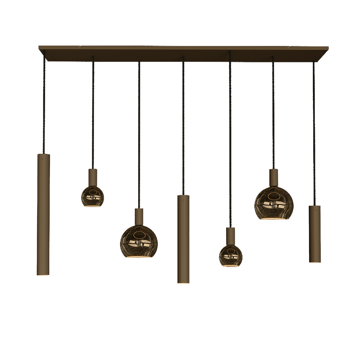 Hanglamp Riva, dikke buizen, stalen armatuur kleur Platinum, 7 lichts, exclusief lichtbronnen, ZTAHL