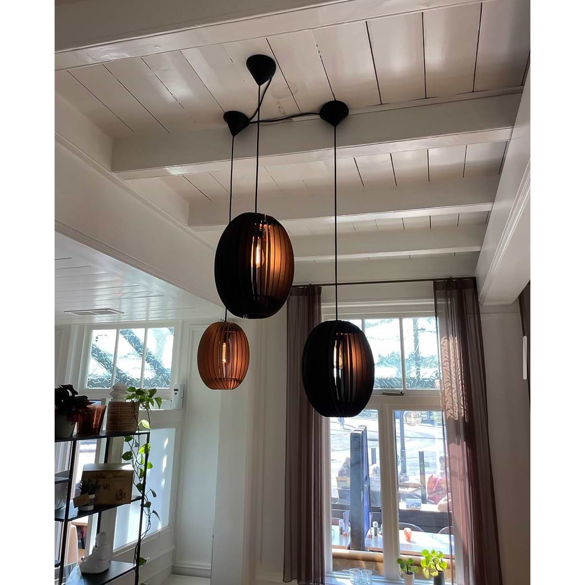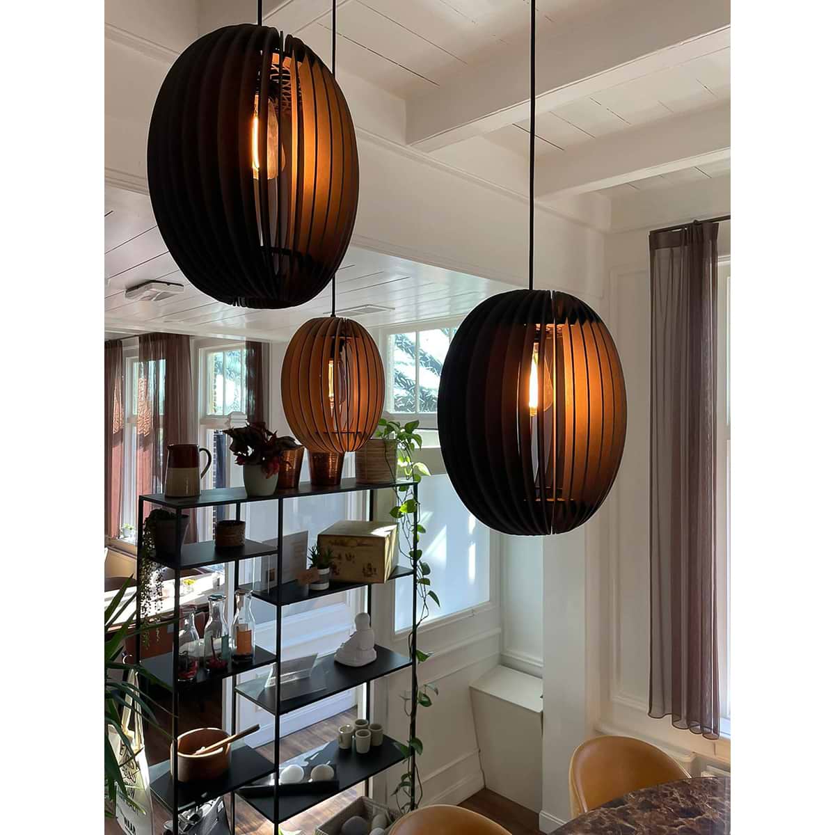 Houten hanglamp, scandinavisch design, Swan, 27cm, Zwart hout, BLIJ DESIGN