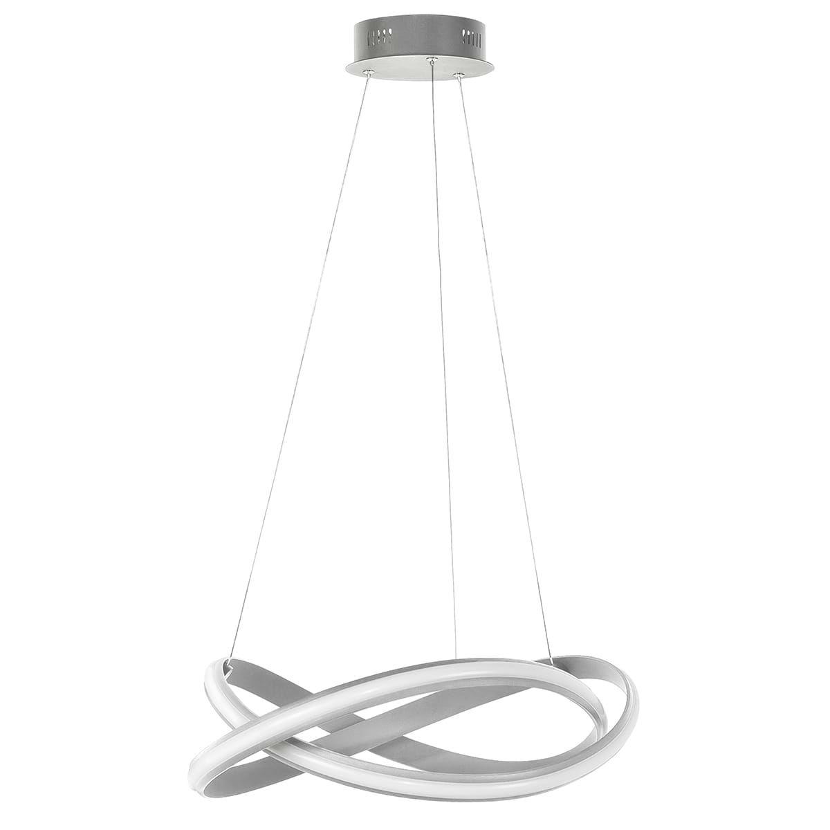 Hanglamp Waves, geïntegreerd LED 40W LED 2700 Kelvin en 3600 Lumen. Hoogte maximaal 140 cm, doorsnede 55 cm. Dimbaar met tronic wanddimmer (exclusief). Kleur zilver. HIGH LIGHT