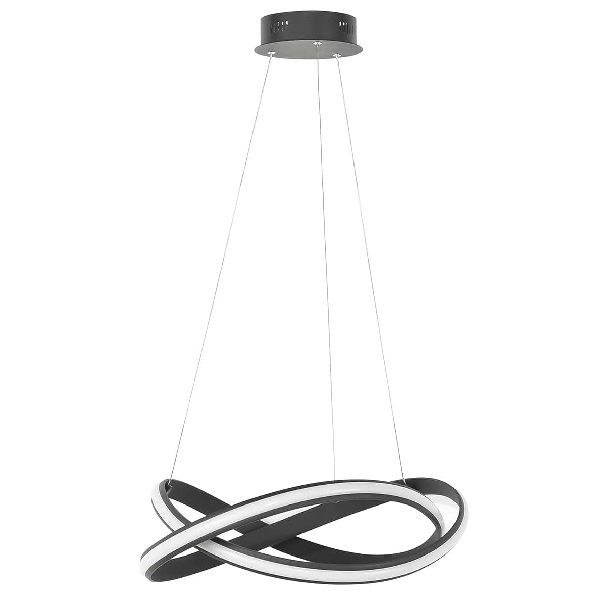 Hanglamp Waves, geïntegreerd LED 40W LED 2700 Kelvin en 3600 Lumen. Hoogte maximaal 140 cm, doorsnede 55 cm. Dimbaar met tronic wanddimmer (exclusief). Kleur zwart. HIGH LIGHT