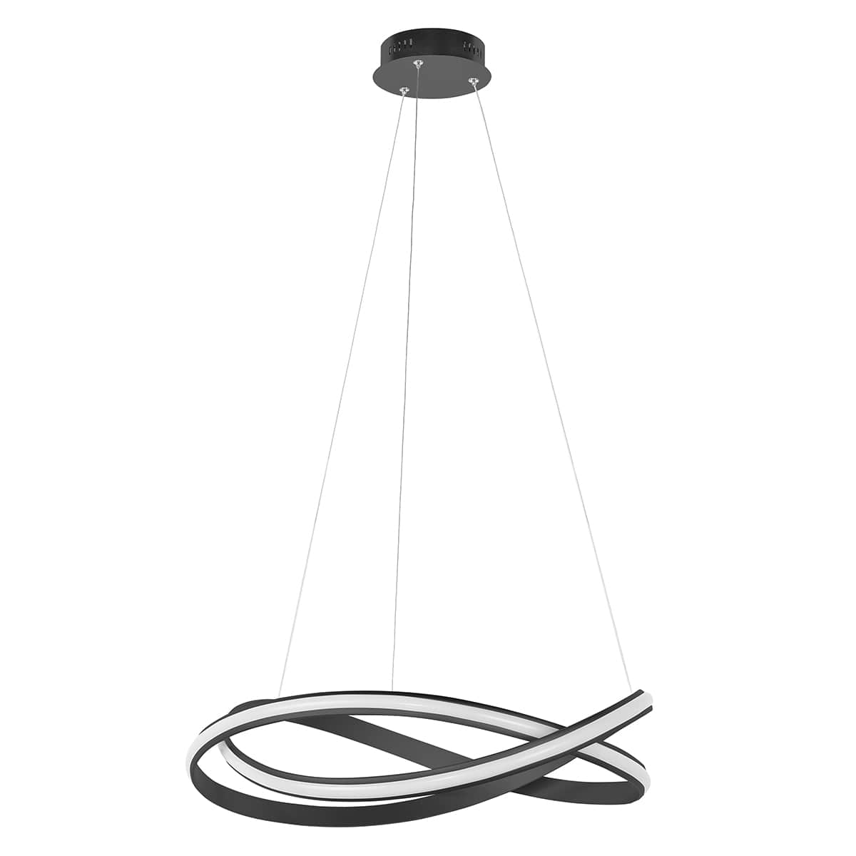 Hanglamp Waves XL, geïntegreerd LED 45W LED 2700 Kelvin en 4050 Lumen. Hoogte maximaal 150 cm, doorsnede 70 cm. Dimbaar met een tronic wanddimmer (exclusief). Kleur zwart. HIGH LIGHT
