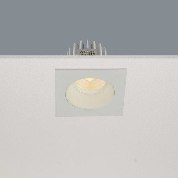 Inbouwspot badkamer en beschutte plaatsen buiten, DL, wit vierkant verzonken dimbaar, 8W IP44 2700K 36º, serie Venice, ART DELIGHT
