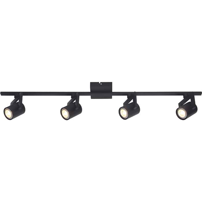 Industriële plafondlamp, balk met vier verstelbare spots, 4-lichts Balk ‘Valvoled’ LED Zwart FREELIGHT