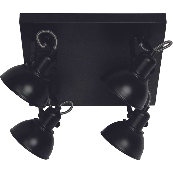 Industriële plafondlamp met vier verstelbare spots, 4-lichts Spot ‘Santo’ Zwart , Industrie lamp, Industriële spots, FREELIGHT – PL 7644 Z