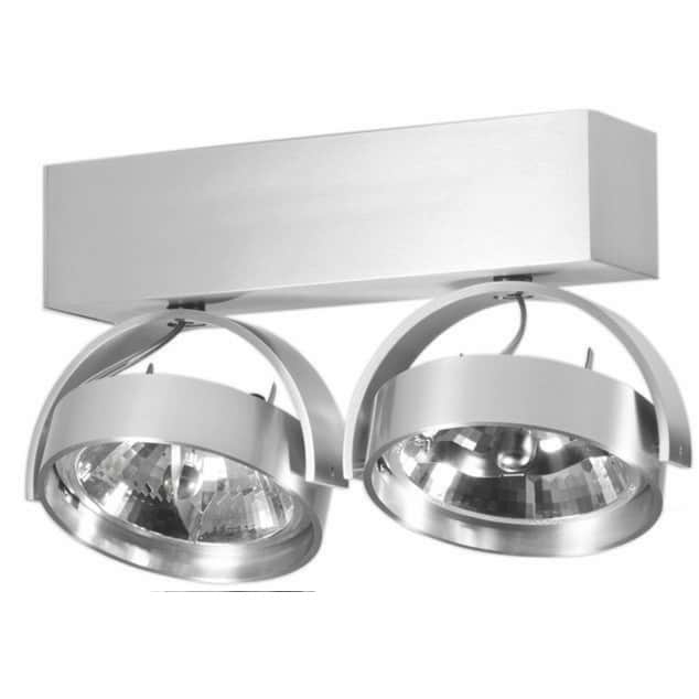 Industriële plafondspot, opbouwspots, plafondlamp met twee verstelbare spots, alu 2-lichts “Dutchess” 25x6cm excl QR111, ART DELIGHT