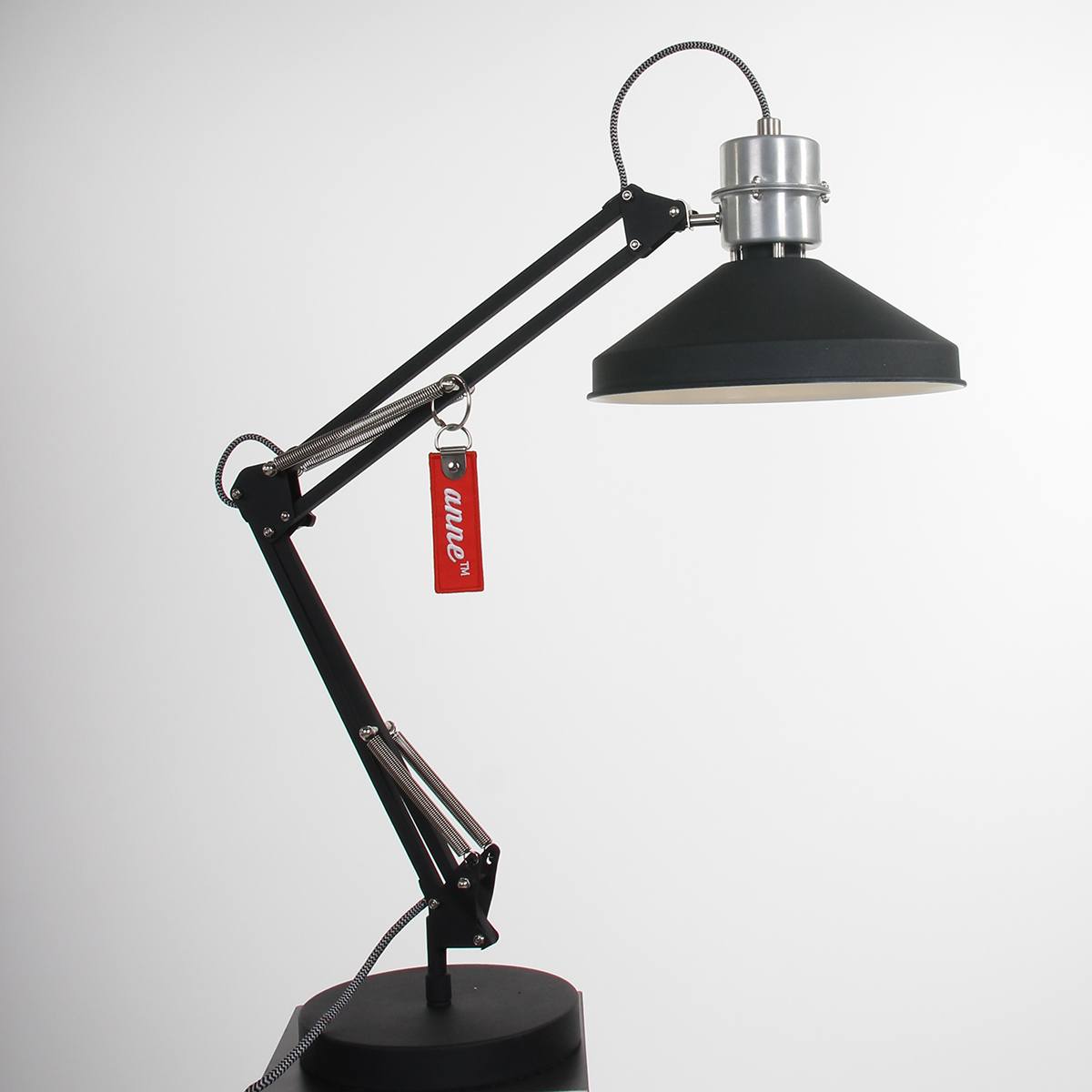 Industriële tafellamp, industriële bureaulamp, 1-lichts Knik ANNE LIGHTING, 7702ZW, Industriële tafellamp, industriële bureaulamp, – Bureaulamp- Anne Lighting- Zappa- Industrieel, Trendy- Zwart Mat zwart- Metaal
