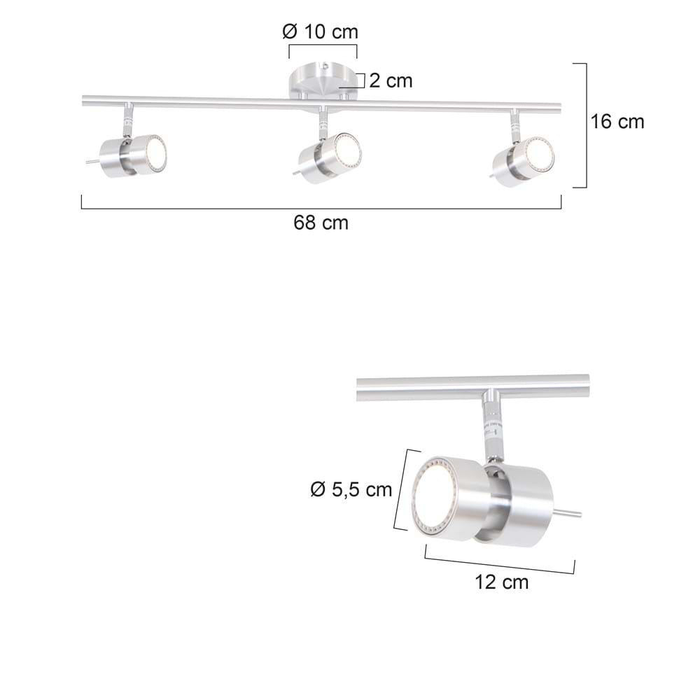 Moderne design opbouw spot 3-lichts, plafondlamp, staal. Spot 3-lichts LED -5783st- STEINHAUER, 7903ST, Plafondlamp- Spots- Steinhauer- Natasja LED- Modern- Staal Staal- Metaal
