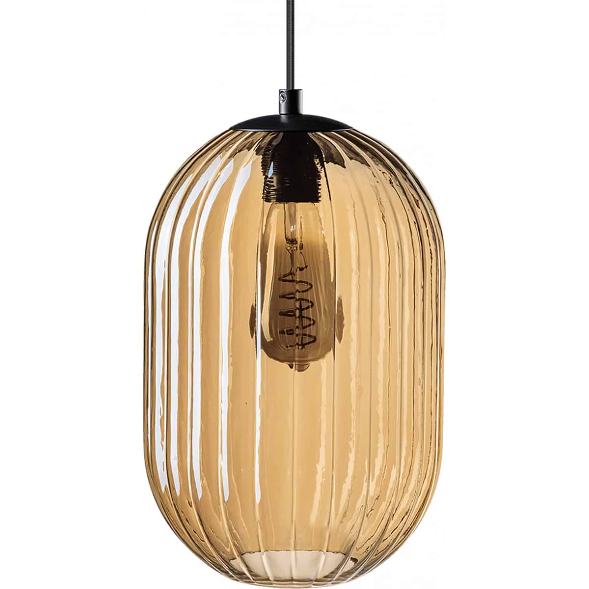 Moderne hanglamp Glamm, armatuur zwart glas amber, hoogte 165 cm, 1-lichts, ETH, Expo Trading Holland
