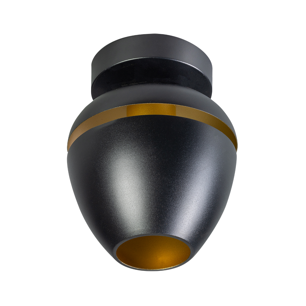 Moderne plafondlamp 1-lichts, serie Claire, buitenzijde zwart, binnenzijde messing – ETH. De lamp is dimbaar via een externe wanddimmer. In de serie Claire zitten ook hanglampen, tafellampen en vloerlampen. Zoek op onze website op ‘Claire’.