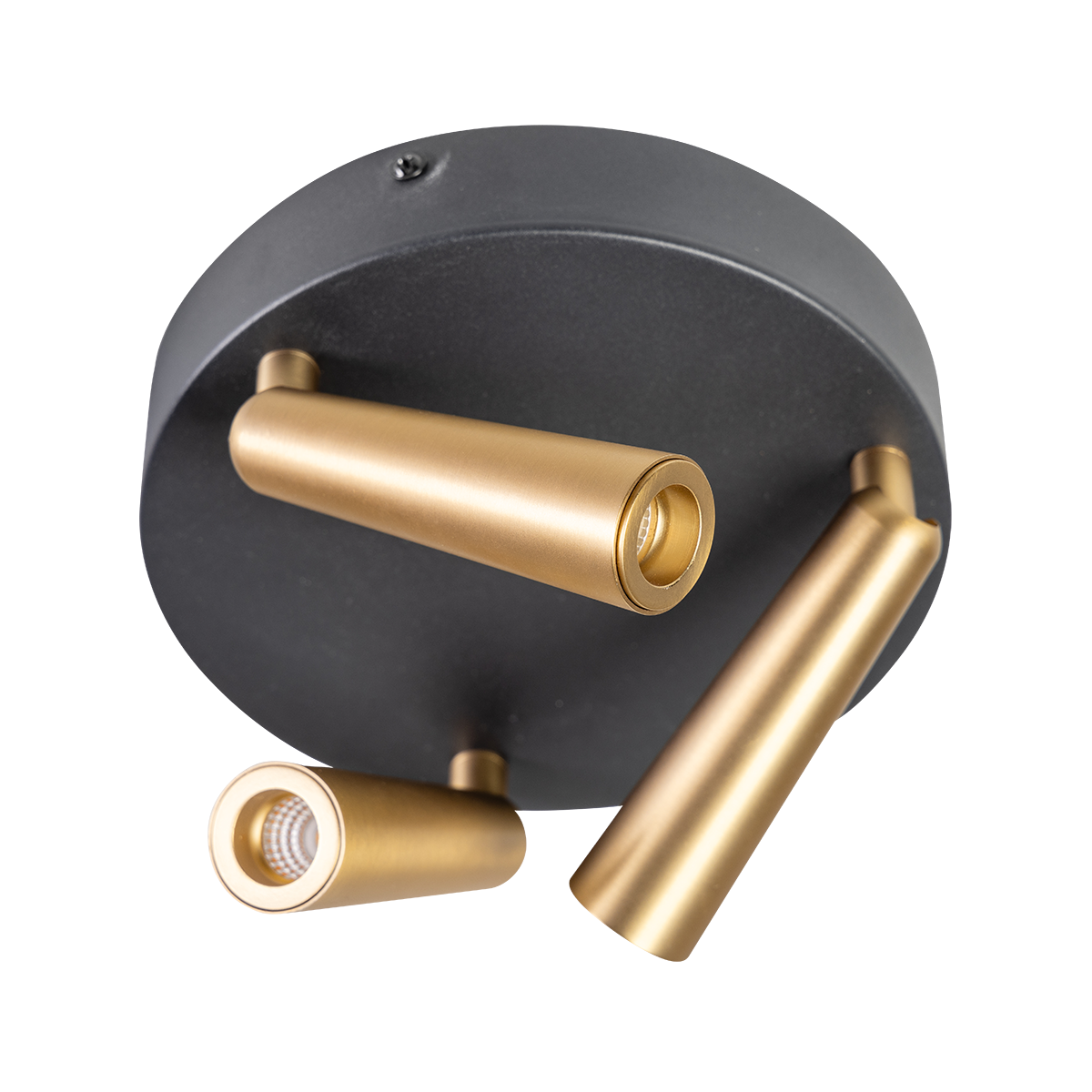 Moderne plafondlamp met drie spots, zwart/goud. Geïntegreerd LED. Serie Barry – ETH