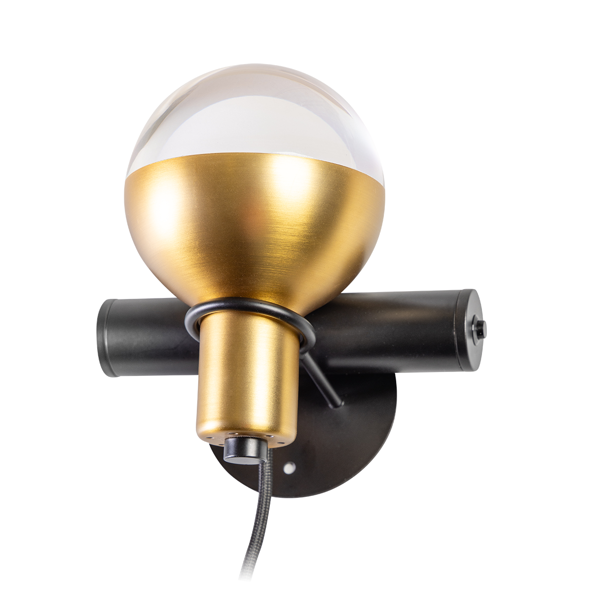 Moderne wandlamp Drop, 1-lichts, zwart en goud metaal, bol van mat glas – ETH 05-WL1346-0230