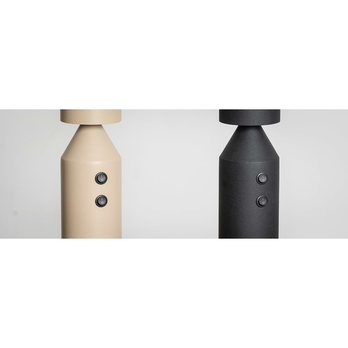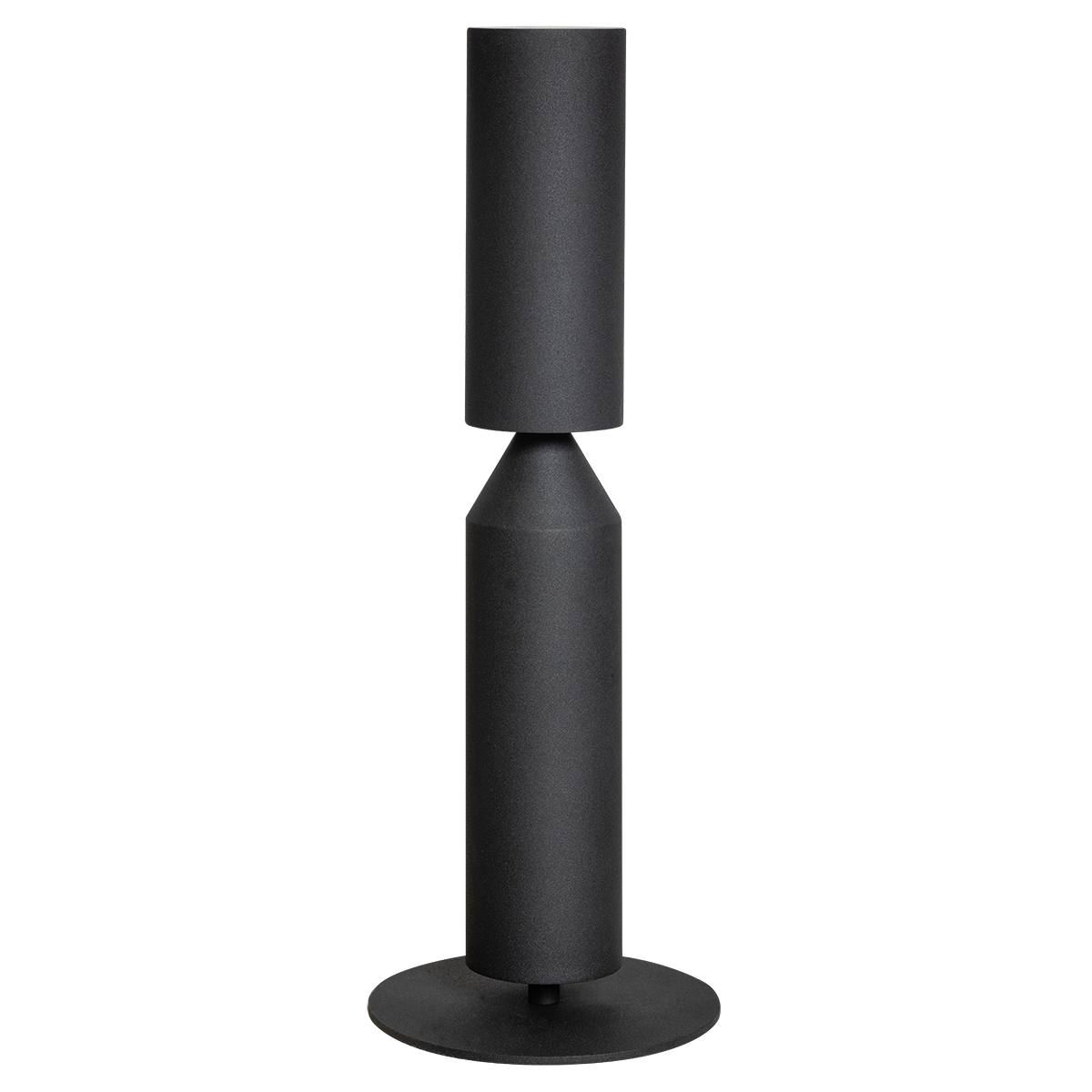 05-TL3222-30. Moderne zwarte strakke tafellamp, Serie Pencil, 2-lichts. LED GU10 – ETH. Deze tafellamp bevat twee LED GU10 spotjes. De ene net boven de punt schijnend naar beneden en de andere bovenin, schijnend naar boven. De lamp heeft een aan- en uitschakelaar op het armatuur. De doorsnede van het armatuur is 80mm, 8 cm. De hoogte van het armatuur is 500mm, 50 cm. De tafelplaat wordt in dezelfde kleur geleverd en heeft een doorsnede van 180mm, 18 cm en een hoogte van 5mm oftewel 0,5 cm. De Serie Pencil bevat een hanglamp, een tafellamp en een vloerlamp. Allemaal in de kleur zwart of zand.