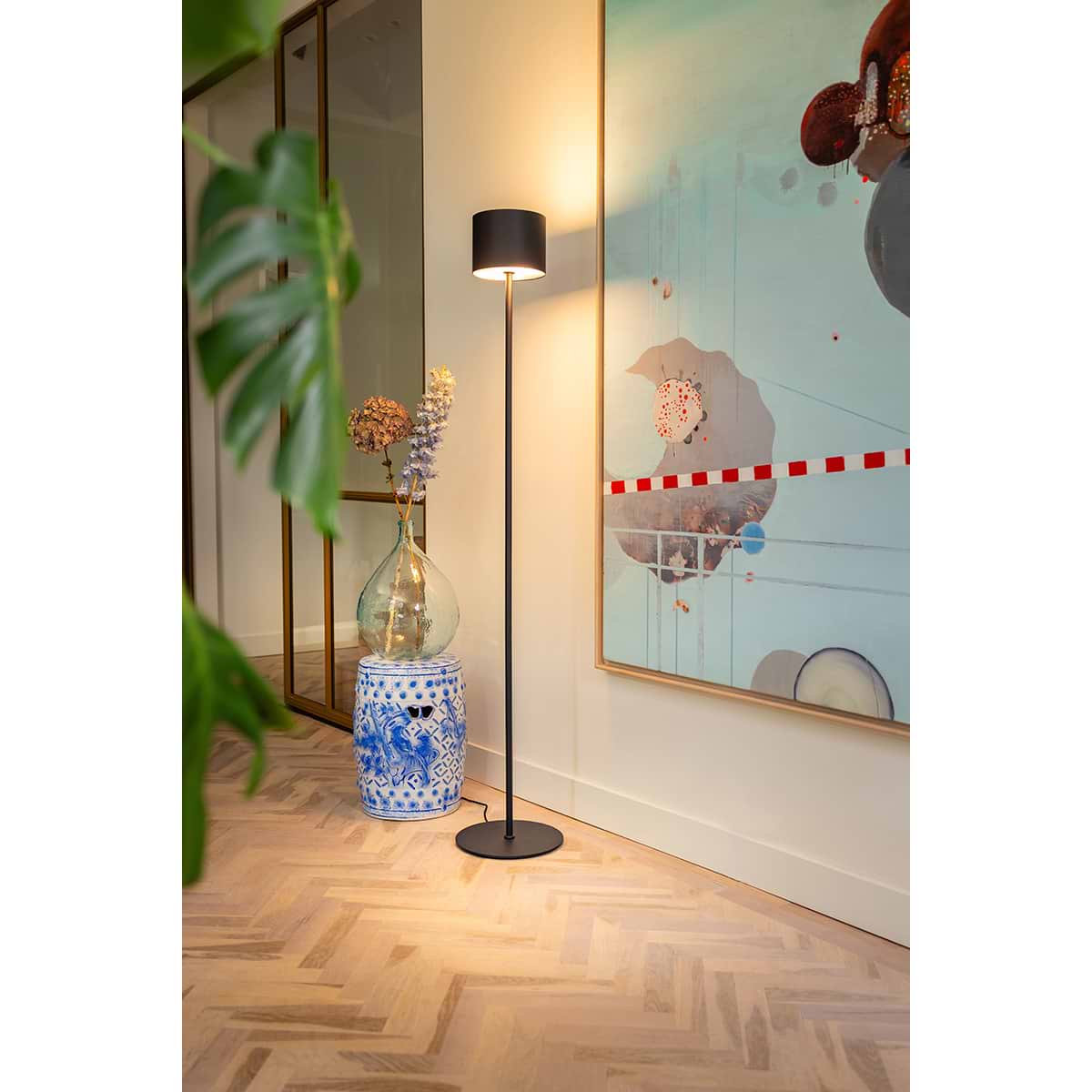 Mooie strakke vloerlamp Maverick. Metaal met kunststof kap, mat zwart – ETH 05-VL8361-30