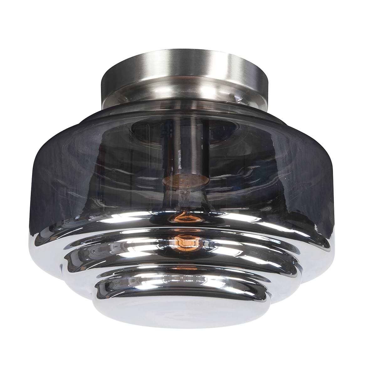 Plafondlamp Cambridge E27 Nikkel-Mat met glas Smoke, 30 cm, HIGH LIGHT