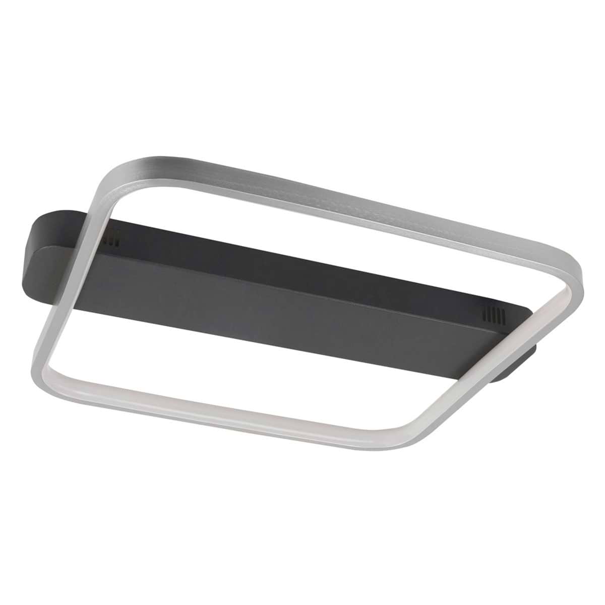 Plafondlamp, plafonnier Ascona. Moderne strakke plafondlamp , mat zwart en Nikkel mat. De mat zwarte plafondplaat heeft een lengte van 46 cm en een breedte van 10 cm. In het nikkel mat licht kader van 40 cm breedte zit een geïntegreerde LED strip. Het licht schijnt naar binnen en straalt uit naar beneden. De plafondlamp komt uit de Ascona serie van HIGH LIGHT waarin ook andere varianten zitten. Deze plafonnier wordt geleverd inclusief een 3-standen driver. Deze lamp heeft een led module die schakelbaar is door middel van het aan en uit doen van de bestaande muurschakelaar (dit mag geen dimmer zijn). Daarmee dimt u de lamp van volle sterkte 100% naar 70% of naar 30%. De geïntegreerde LED lichtbron heeft telt 28 Watt, 2700 Kelvin en 2520 Lumen.