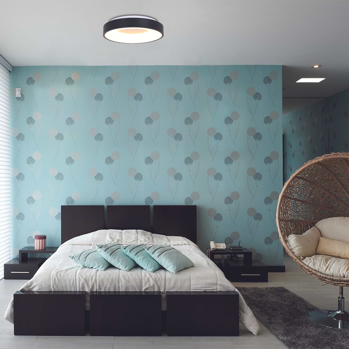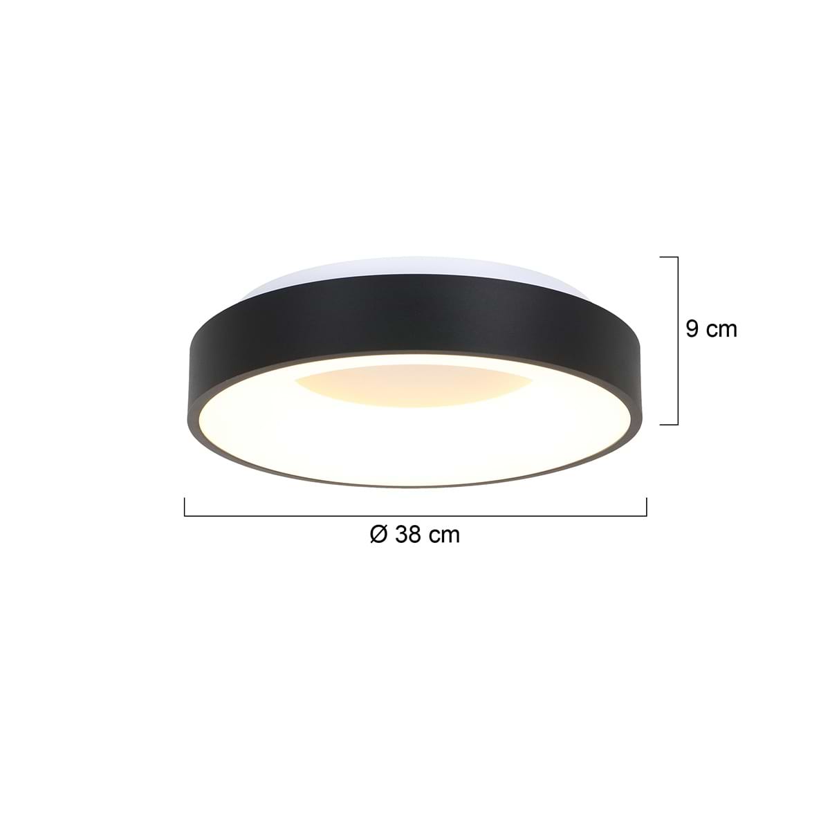 Plafondlamp rond 38cm 30w 2700k, zwart en wit, modern, Ringlede, Steinhauer