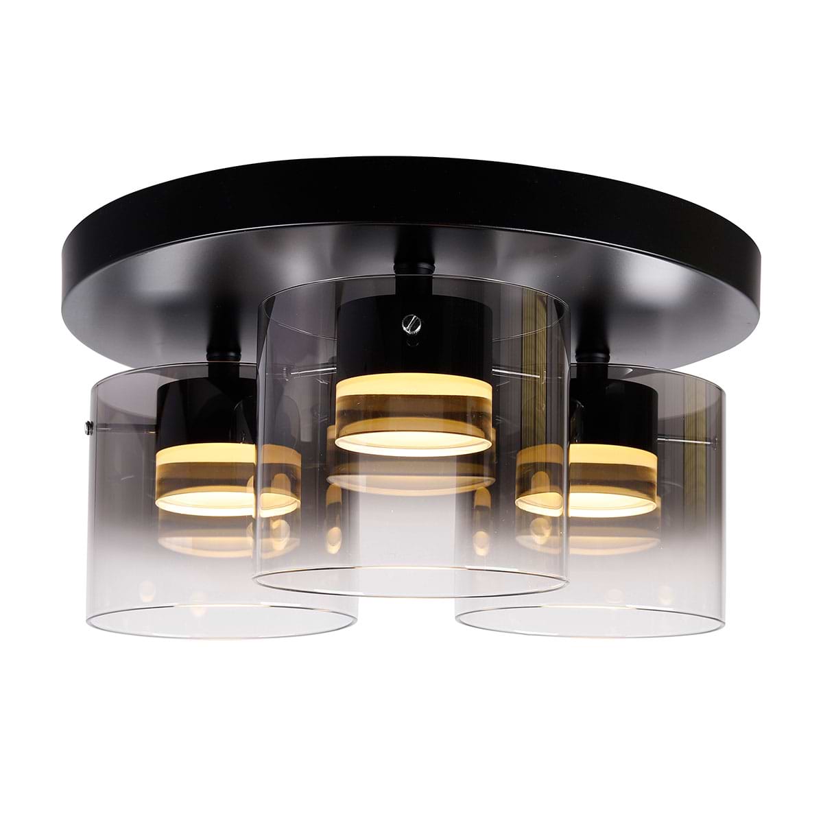 Plafondlamp Salerno, LED, mat zwart, 3-lichts, Smoke glas, dimbaar, doorsnede 40 cm, HIGH LIGHT